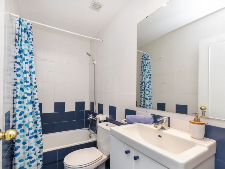 "Nautic Golf II A", apartamento de 2 estancias 55 m2 en el 2° piso. Con mobiliario funcional: salón-comedor con 1 sofá-cama (135 cm, 190 cm de longitud), TV y TV digital (pantalla plana). Salida a la terraza. 1 dorm. con 1 cama de matrimonio (135 cm, 195 cm de longitud). Cocina abierta (horno, 4 placas de vitrocerámica, tostadora, hervidor de agua eléctrico, microondas, cafetera eléctrica). Baño/bidet/WC. Ningún tipo de calefacción. Terraza. Muebles de terraza. Vista a la piscina. El alojamiento dispone de: lavadora, plancha, trona, cuna, secador de pelo. Internet (Wifi, gratis). Plaza de aparcamiento n. A204. A tener en cuenta: casa para no fumadores. TV solamente ES. HUTG-070984