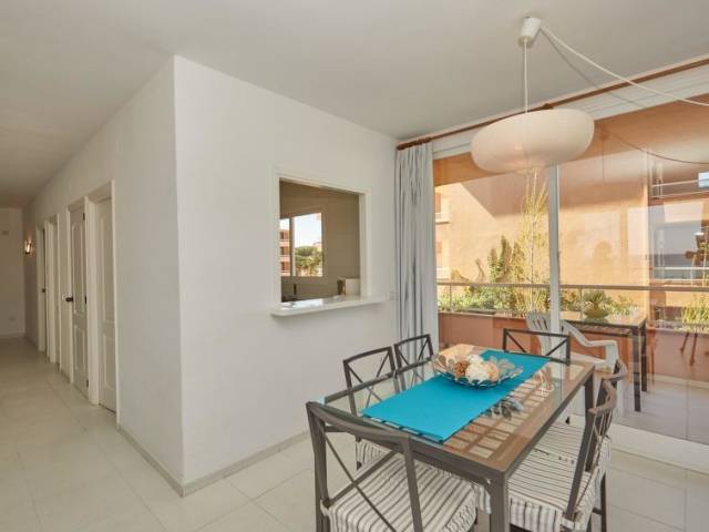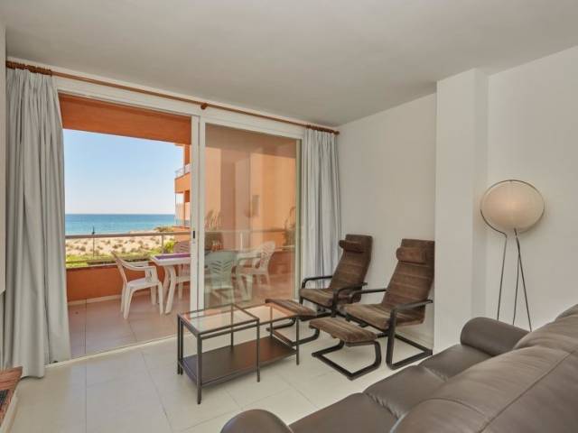 Complejo vacacional, confortable, agradable "GOLF MAR". Equipamiento de la vivienda: ascensor, lavadora (privado). Acceso en coche todo el año. Vista desde la vivienda al mar y al jardín. Entorno de la vivienda: terreno (comunitario, vallado), jardín (comunitario), piscina (comunitario, longitud 15 m x ancho 8 m, abierto desde 01.06. hasta 01 .09.), piscina para niños (comunitario). Infraestructura y distancias: tienda 100 m, tienda de comestibles 100 m, supermercado 100 m, restaurante 100 m, playa de arena 20 m, campo de golf 100 m. Del 01.03 al 31.05 posibilidad de servicio de calefacción según consumo al precio de 0,15€ por kw. Lectura de contador a la entrada y a la salida. Reservable y pagadero en plaza. Apartamento de "Golf Mar 2 dorm", 3 piezas para 5 personas, 80 m2, con mobiliario confortable y agradable. Salón-comedor con TV regional. Fumar no permitido. Internet (Wifi). 1 sofá-cama. Dormitorio con 2 camas individuales. Dormitorio con 2 camas individuales. Cocina abierta con 4 quemadores, microondas, horno, grill, lavavajillas y frigorifico. Baño/WC y bidet. Balcón 6 m2, terraza 10 m2, muebles de terraza. Otros equipamientos: plancha, lavadora. HUTG016496