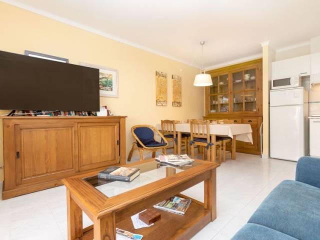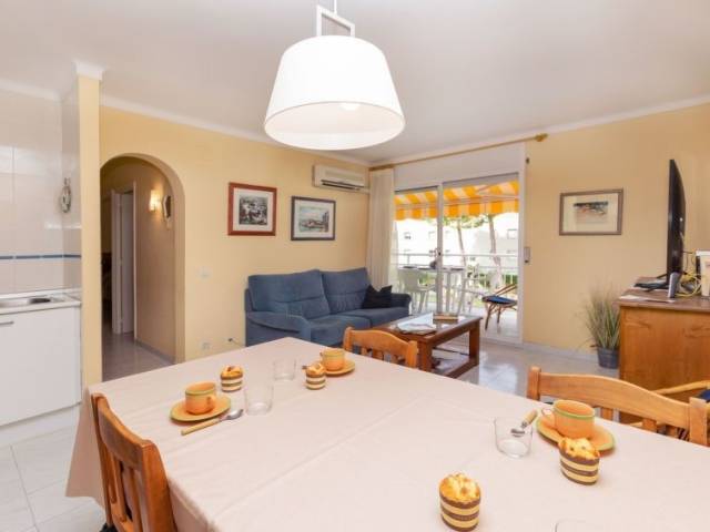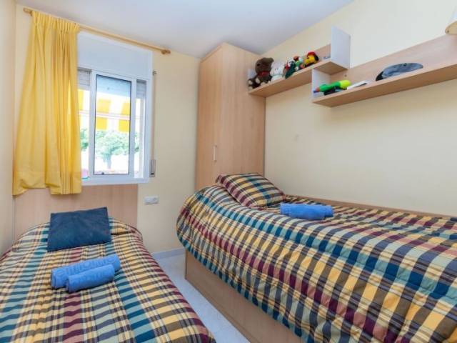 Apartamento de 3 estancias 50 m2 en el 2° piso. Con mobiliario confortable y agradable: entrada. Salón-comedor con mesa de comedor y TV cable (pantalla plana). Salida a la terraza. 1 dorm. con 1 cama de matrimonio (130 cm, 190 cm de longitud). 1 dorm. con 2 camas (90 cm, 190 cm de longitud). Cocina abierta (3 placas de vitrocerámica, tostadora, hervidor de agua eléctrico, microondas, congelador, cafetera eléctrica). Baño/WC. Terraza parcialmente cubierta. Muebles de terraza. Vista bonita a la piscina y al jardín. El alojamiento dispone de: lavadora, plancha, secador de pelo. Internet (Wifi, gratis). A tener en cuenta: adecuado para familias. Apartamento para no fumadores. Sin ascensor. HUTG064356