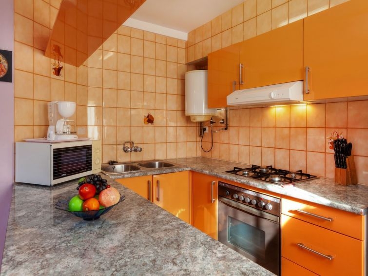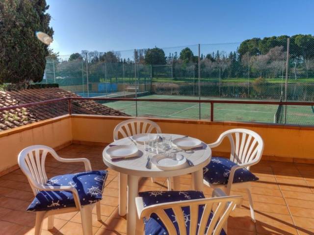 Apartamento de 3 estancias 50 m2 en el 1° piso. Con mobiliario rústico y agradable: salón-comedor con TV digital y pantalla plana. Salida a la terraza. 1 dorm. con 1 cama de matrimonio (135 cm, 190 cm de longitud). 1 dorm. con 2 camas (90 cm, 190 cm de longitud). Cocina abierta (4 fogones, microondas, cafetera eléctrica) con barra americana. Baño/bidet/WC. Calentador (30 litros). Terraza grande 33 m2. Muebles de terraza. El alojamiento dispone de: lavadora. A tener en cuenta: TV solamente ES. HUTG008074