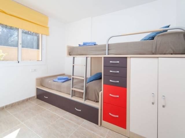Casa adosada 4 estancias 74 m2. Salón-comedor con TV digital y pantalla plana. Salida a la terraza, a la piscina. 1 dorm. con 1 x 2 literas. Cocina abierta (4 fogones, horno, microondas, congelador). Ducha/WC. Planta superior: 1 dorm. con 1 cama-nido (2 pers.). 1 dorm. con 1 cama de matrimonio. Salida a la terraza. Baño/bidet/WC. Muebles de terraza. Vista a la piscina y al jardín. El alojamiento dispone de: lavadora. A tener en cuenta: TV solamente ES. HUTG004625