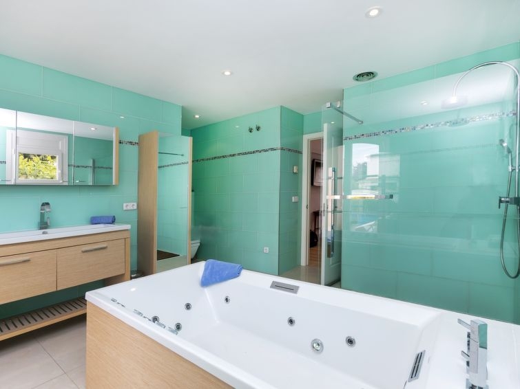 Casa 3 estancias 234 m2 en 2 plantas. Espacioso y luminoso, con mobiliario confortable y agradable: salón-comedor con chimenea (sólo con función decorativa), TV cable. Salida a la terraza-jardín, a la piscina. 1 dorm. con 1 cama de matrimonio (200 cm, 200 cm de longitud), baño/ducha/WC. Salida a la terraza-jardín, a la piscina. 1 dorm. con 1 cama de matrimonio (160 cm, 200 cm de longitud). Salida a la terraza-jardín, a la piscina. Ducha/WC, ducha hidromasaje. Ningún tipo de calefacción. Planta superior: cocina-comedor (horno, lavavajillas, 4 placas de vitrocerámica, tostadora, hervidor de agua eléctrico, microondas, cafetera eléctrica) con mesa de comedor. Salida a la terraza. Muebles de terraza. Vista a la piscina y al jardín. El alojamiento dispone de: lavadora, plancha, secador de pelo. Internet (Wifi, gratis). HUTG-07189150