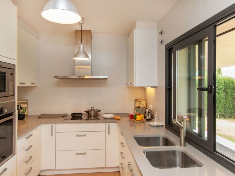 Casa 6 estancias 263 m2, en planta baja elevada. Espacioso y luminoso, con mobiliario confortable: salón-comedor, en 2 niveles con TV digital y pantalla plana. Salida a la terraza-jardín. 2 dorm., cada habitación con 1 cama de matrimonio (135 cm, 190 cm de longitud), ducha/bidet/WC. Salida a la terraza-jardín. 1 dorm. con 1 cama de matrimonio (135 cm, 190 cm de longitud). 1 dorm. con 2 x 2 literas (180 cm, 190 cm de longitud). Cocina (horno, lavavajillas, 4 Placas de inducción, microondas, cafetera eléctrica). Salida a la terraza-jardín. Baño/bidet/WC. Calefacción de gas. Planta superior: (escalera de caracol). Salida a la terraza. Terraza grande parcialmente cubierta. Muebles de terraza. Vista al jardín. El alojamiento dispone de: lavadora, secadora, plancha, trona, cuna hasta 2 años (extra), secador de pelo. Internet (Wifi, gratis). A tener en cuenta: adecuado para familias. Casa para no fumadores. TV solamente ES. HUTG058106