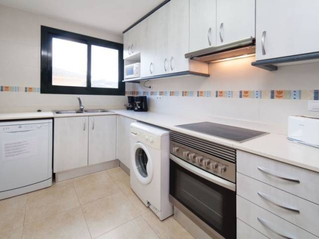 Apartamento de 3 estancias 54 m2 en el 1° piso. Con mobiliario confortable y bonito: salón-comedor 16 m2 con TV digital, radio y DVD. Salida a la terraza. 1 dorm. 10 m2 con 1 cama de matrimonio y baño/bidet/WC. 1 dorm. 6 m2 con 1 x 2 literas. Cocina 8 m2 (4 fogones, horno, lavavajillas, microondas, congelador). Ducha/WC. Aire acondicionado, calentador (100 litros). Terraza 5 m2. Muebles de terraza. Vista a la piscina. El alojamiento dispone de: lavadora. Internet (Wifi, gratis). HUTG000820