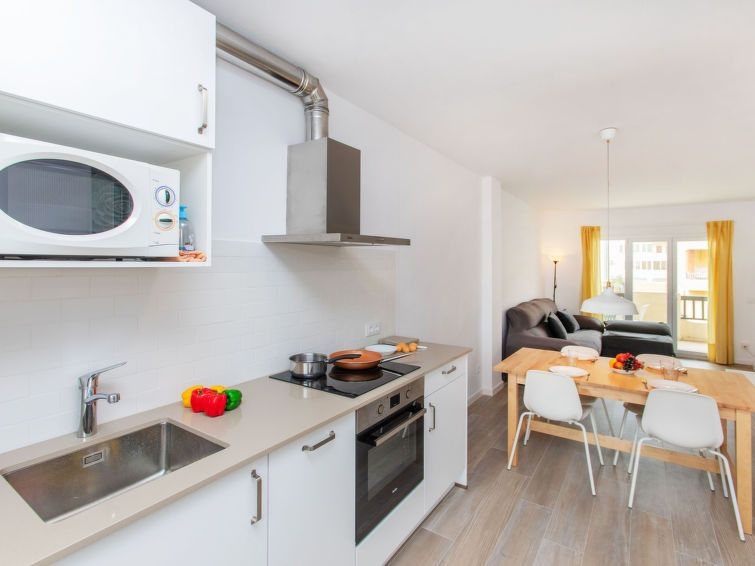 Apartamento de 3 estancias 55 m2 en el 2° piso. Con mobiliario confortable y agradable: entrada. Salón-comedor con TV digital, canales internacionales, pantalla plana y estufa eléctrica. Salida al balcón. 1 dorm. con 1 x 1 literas (90 cm, 190 cm de longitud), 1 cama de matrimonio (135 cm, 190 cm de longitud), estufa eléctrica. 1 dorm. con 1 cama de matrimonio (150 cm, 190 cm de longitud), estufa eléctrica. Cocina abierta (horno, lavavajillas, 4 placas de vitrocerámica, microondas, cafetera eléctrica). Ducha/WC. Balcón grande 12 m2. Muebles de balcón. El alojamiento dispone de: lavadora. Internet (Wifi, gratis). A tener en cuenta: apartamento para no fumadores. TV solamente ES, FR, EN. HUTG026575