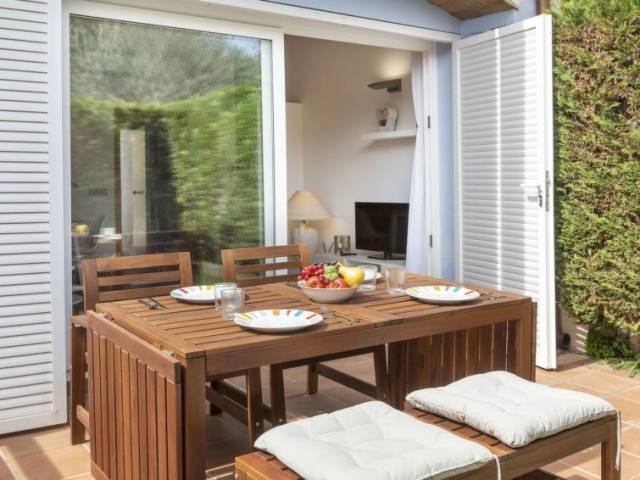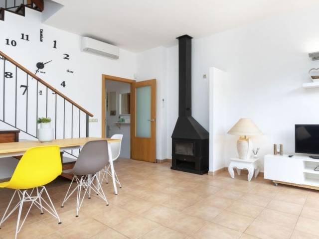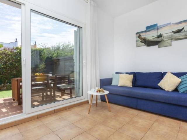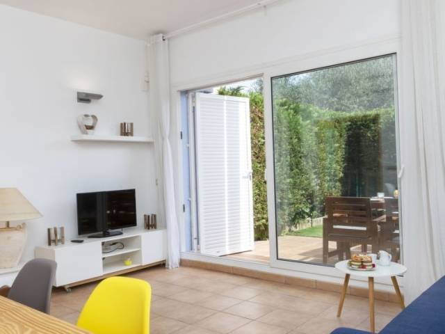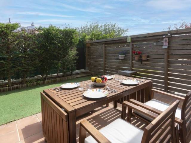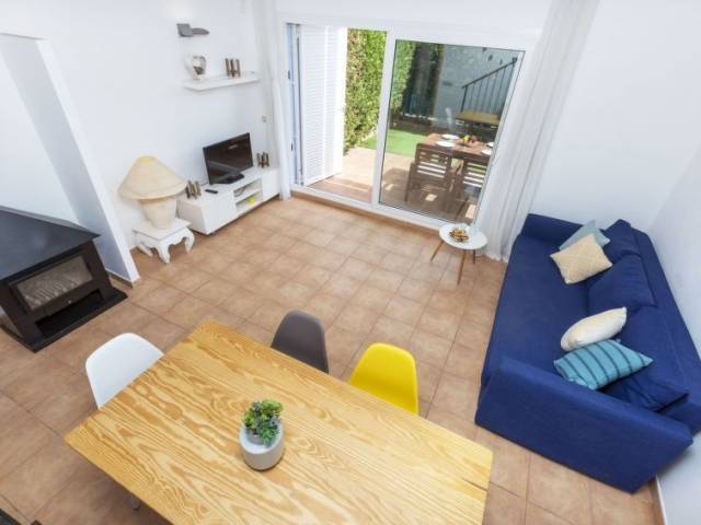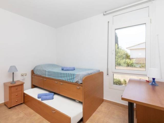 "Sonia", casa adosada 4 estancias 94 m2 en 3 plantas. Con mobiliario funcional y confortable: salón-comedor con chimenea (sólo con función decorativa), TV digital. Salida a la terraza-jardín. Cocina (horno, lavavajillas, 3 placas de vitrocerámica, microondas, cafetera eléctrica). WC separado. Ningún tipo de calefacción. Planta superior: 1 dorm. con 1 cama-nido (2 x 90 cm, 190 cm de longitud). 1 dorm. con 1 cama de matrimonio (180 cm, 190 cm de longitud). Salida al balcón. 1 dorm. con 1 x 2 literas (90 cm, 190 cm de longitud). Salida al balcón. Baño/bidet/WC. Salida a la terraza. Muebles de terraza, barbacoa (portátil). El alojamiento dispone de: lavadora, plancha, secador de pelo. Internet (Wifi, gratis). A tener en cuenta: casa para no fumadores. TV solamente ES. HUTG-068251
