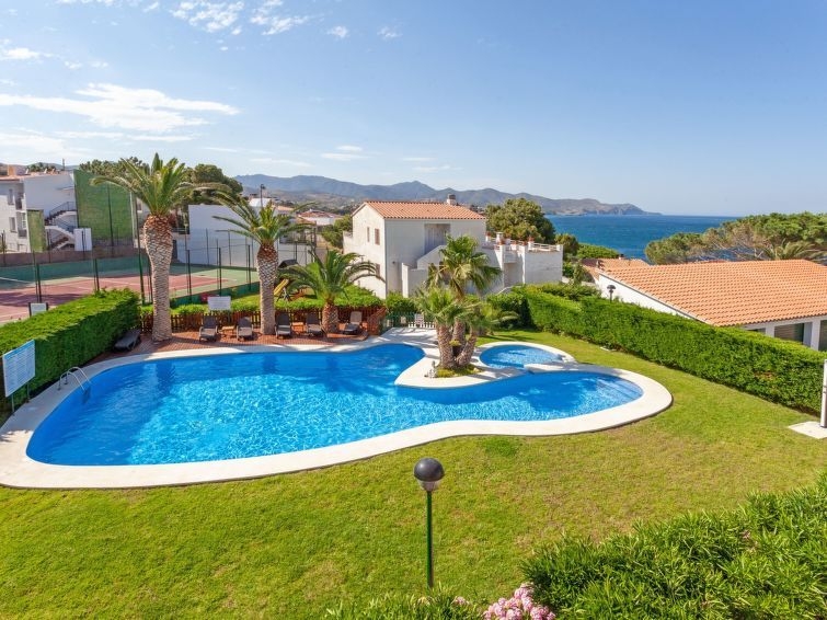 Fane de Baix a 5 km de El Port de la Selva: Complejo vacacional "Palmiers I". A 2 km del centro de Llançà, a 50 m del mar. Comunitario: terreno 6'000 m2 con plantas y árboles, piscina (17 x 7 m, Disponible por temporada: 03.May. - 30.Sep.) con sistema de limpieza por electrolysis de sal. Tenis, parque infantil (columpio), aparcamiento a 100 m. Centro comercial 2 km, restaurante 2 km, playa de arena 2 km playa de gravilla, cala para bañarse 400 m. Campo de golf 17 km. A tener en cuenta: Se pueden reservar alojamientos adicionales. Parking para bicicleta cubierto. Tenis 1h al día gratis de 9h a 18h.
