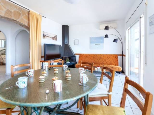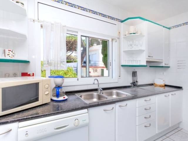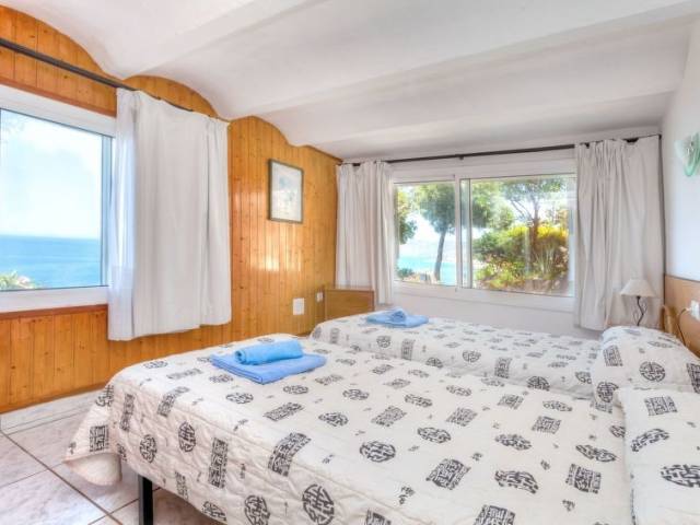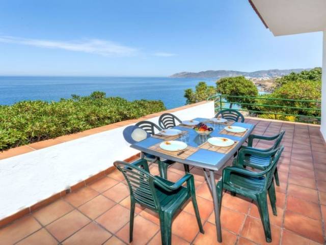 Fane de Baix a 5 km de El Port de la Selva: En 1a linea de mar. Casa "Don Quijote", bonita, agradable de 2 plantas. 4 casas en el complejo. 11 apartamentos en la residencia. A 2 km del centro de Llançà, lugar soleado, a 25 m del mar. Comunitario: terreno 6'000 m2 con plantas y árboles, piscina (17 x 7 m, 200 cm de profundidad, Disponible por temporada: 03.May. - 30.Sep.) con escalera interior y sistema de limpieza por electrolysis de sal. Piscina para niños, ducha exterior, tenis, parque infantil (tobogán, columpio). Acceso por escaleras (9 escalones) hasta la casa. Garaje individual. Playa de gravilla 400 m, cala para bañarse 150 m. Campo de golf (18 hoyos) 18 km. Atracciones en los alrededores: Cadaqués 16 km, Golf Peralada 18 km, Casino Peralada 18 km. Grupos de jóvenes sólo bajo petición. Tenis 1h al día gratis de 9h a 18h. Casa situada delante del Camino de Ronda de Llançà-Port de la Selva (acceso al camino por escaleras).