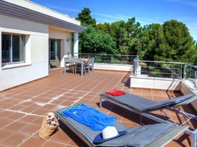 Ático de 3 estancias 60 m2 en el 1° piso. Luminoso, con mobiliario moderno y agradable: salón-comedor con 1 sofá-cama doble (1 x 140 cm, 195 cm de longitud), chimenea, TV digital, pantalla plana, aire acondicionado y bomba de calor, caliente. Salida a la terraza. 1 dorm. con 1 cama de matrimonio (1 x 150 cm). 1 dorm. con 1 cama-nido (2 x 90 cm). Cocina abierta (horno, lavavajillas, 4 placas de vitrocerámica, microondas, congelador, cafetera eléctrica) con barra americana. Baño/bidet/WC. Calefacción eléctrica. Terraza grande 30 m2, terraza 12 m2. Muebles de terraza. Vista bonita al mar y al paisaje. El alojamiento dispone de: lavadora. Plaza de aparcamiento n. 3. A tener en cuenta: TV solamente ES, FR. Sin ascensor. HUTG003283