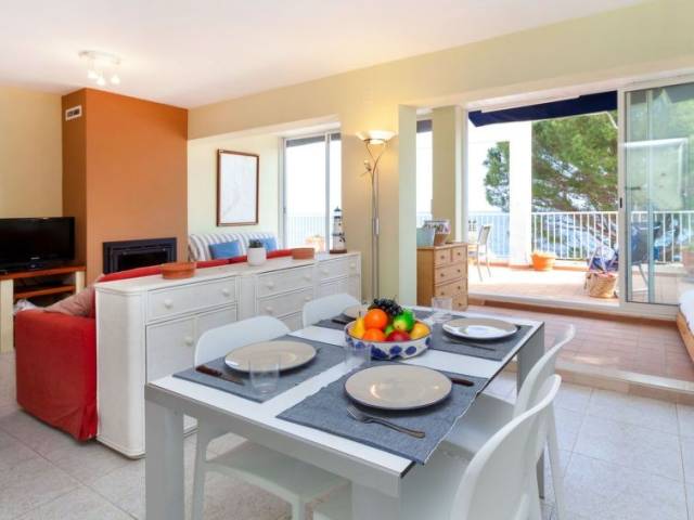 "El Niu", ático de 3 estancias 59 m2. Con mobiliario funcional y agradable: salón-comedor con chimenea, TV digital y pantalla plana. Salida a la terraza. 1 dorm. con 1 cama de matrimonio (140 cm), TV digital. Salida a la terraza. 1 dorm. con 1 cama (90 cm), 1 x 2 literas (90 cm). Cocina abierta (horno, 4 placas de vitrocerámica, microondas, cafetera eléctrica). Baño/bidet/WC. Terraza grande 30 m2. Muebles de terraza, barbacoa. Vista bonita al mar. El alojamiento dispone de: lavadora. A tener en cuenta: adecuado para familias. TV solamente ES. HUTG054508