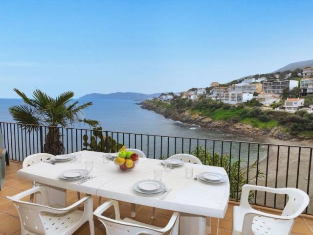 Cau del Llop: Casa de apartamentos "Cambre d'Aze", de 3 plantas. A 800 m del centro de Llançà, a 10 m del mar, a 10 m de la playa, acceso directo a la playa. Acceso por escaleras (35 escalones) hasta la casa. Supermercado, centro comercial, restaurante 800 m, estación de tren "Llançà" 1.2 km, playa de gravilla "Cau del Llop", cala para bañarse 10 m. Campo de golf 17 km, tenis 800 m. Atracciones en los alrededores: Minigolf, Windsurf, Jet-Ski, Kayack. Grupos de jóvenes sólo bajo petición.