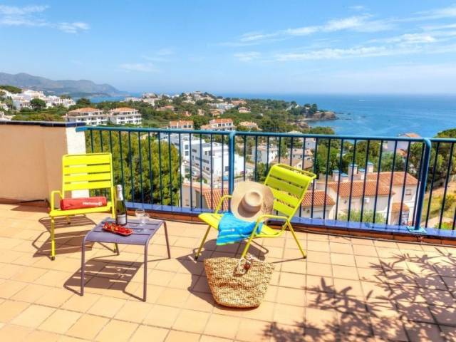 Apartamento en dos niveles 3 estancias 68 m2 en el 2° piso. Luminoso, con mobiliario confortable y de buen gusto: salón-comedor con TV digital y aire acondicionado. Salida a la terraza. 1 dorm. con 1 cama de matrimonio. 1 dorm. con 2 camas. Cocina (horno, lavavajillas, X placas de vitrocerámica, microondas). Baño/bidet/WC. Terraza grande 68 m2. Muebles de terraza, tumbonas. Vista espléndida al mar y al paisaje. El alojamiento dispone de: lavadora. A tener en cuenta: TV solamente ES, FR. HUTG003284