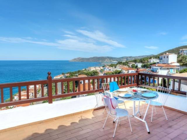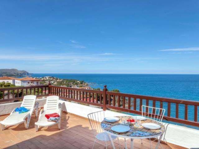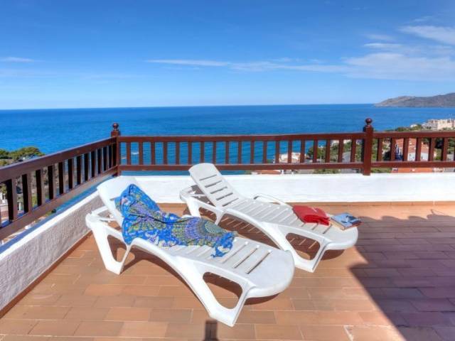 Cau del Llop: Casa de apartamentos "Mar". A 1 km del centro de Llançà, lugar tranquilo, soleado en una pendiente, a 300 m del mar. Comunitario: jardín 500 m2, piscina (14 x 5 m, Disponible por temporada: 01.Jun. - 30.Sep. horario piscina: 09:30-23:00). Privado: piscina para niños. Centro comercial 1 km, restaurante 1 km, playa de gravilla 300 m. Campo de golf 17 km. Grupos de jóvenes sólo bajo petición.