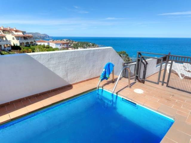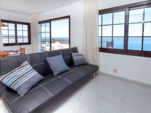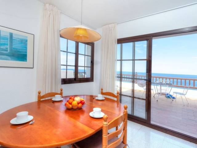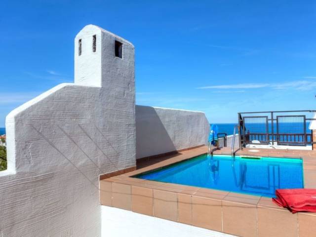 Ático de 3 estancias 60 m2 en el 2° piso, orientación sureste. Con mobiliario funcional: salón-comedor 20 m2, en 2 niveles con 1 sofá-cama, TV digital y pantalla plana. 1 dorm. con 1 cama de matrimonio. 1 dorm. con 2 camas. Cocina (4 fogones, horno, lavavajillas, microondas) con pasa-platos. Baño/bidet/WC. Calefacción eléctrica. Terraza 40 m2. Muebles de terraza, barbacoa, tumbonas (4). Vista panorámica al mar. El alojamiento dispone de: lavadora, secador de pelo. Plaza de aparcamiento (cubierto). A tener en cuenta: sin ascensor. Trastero para bicicletas (2'50 m x 2'50 m). Pequeña piscina privada de niños (3m x 2m, 01.06-30.09). HUTG003282