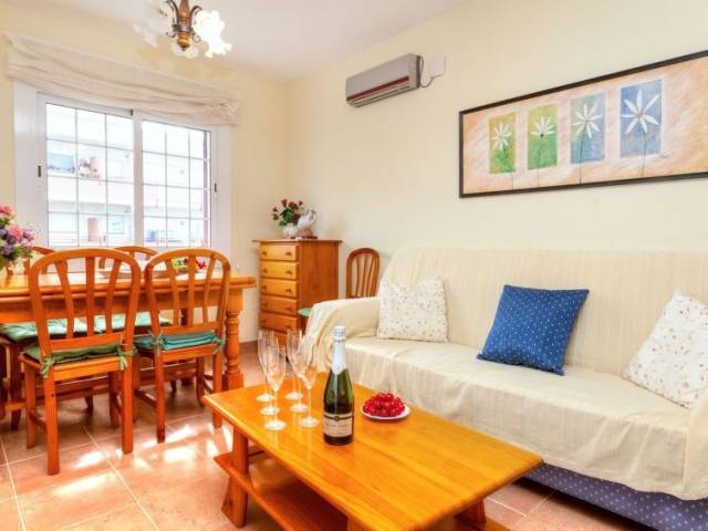 Apartamento de 3 estancias 60 m2 en el 1° piso. Con mobiliario funcional y de buen gusto: salón-comedor 16 m2 con TV digital y calefacción eléctrica. Salida a la terraza. 1 dorm. con 1 cama de matrimonio (1 x 135 cm). 1 dorm. con 2 camas (90 cm), 1 cama-nido (1 pers.). Cocina (4 fogones, horno, lavavajillas, microondas, congelador). Baño/bidet/WC. Terraza 6 m2. Muebles de terraza. El alojamiento dispone de: lavadora. Plaza de aparcamiento n. 1. HUTG002895
