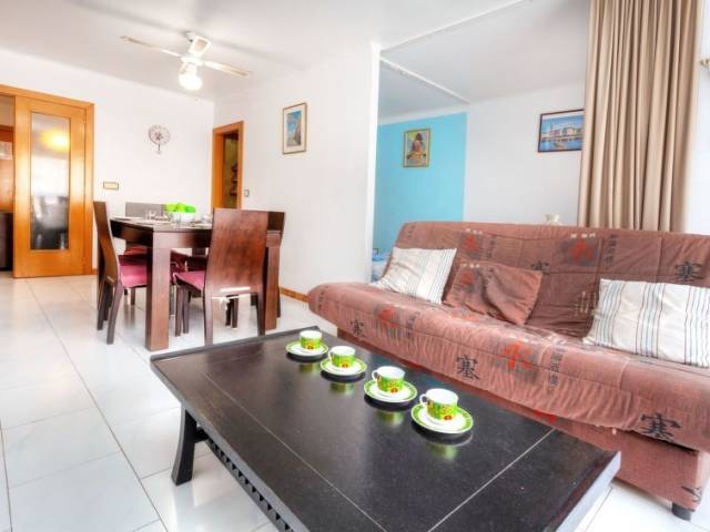 Apartamento de 3 estancias 65 m2 en el 3° piso. Con mobiliario funcional: salón-comedor 18 m2 con cortina con 1 cama (90 cm), 1 sofá-cama (120 cm), TV satélite, TV digital, pantalla plana, DVD, estufa eléctrica y estufa de gas. Salida al balcón. 1 dorm. con 2 camas (90 cm), estufa eléctrica. 1 dorm. con 1 cama de matrimonio (1 x 150 cm), estufa eléctrica. Cocina (4 fogones, horno, microondas, congelador, cafetera eléctrica). Baño/WC, ducha/WC. Aire acondicionado. Balcón pequeño. Rincón para sentarse. Vista lateral al mar. El alojamiento dispone de: lavadora. A tener en cuenta: TV solamente ES, FR. HUTG020735