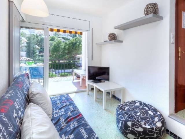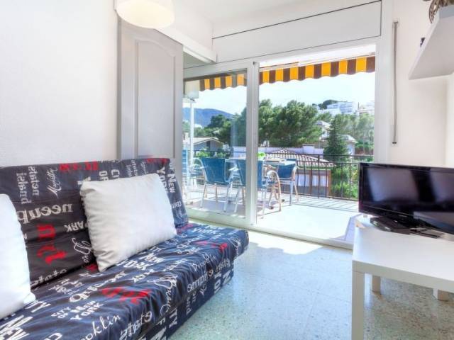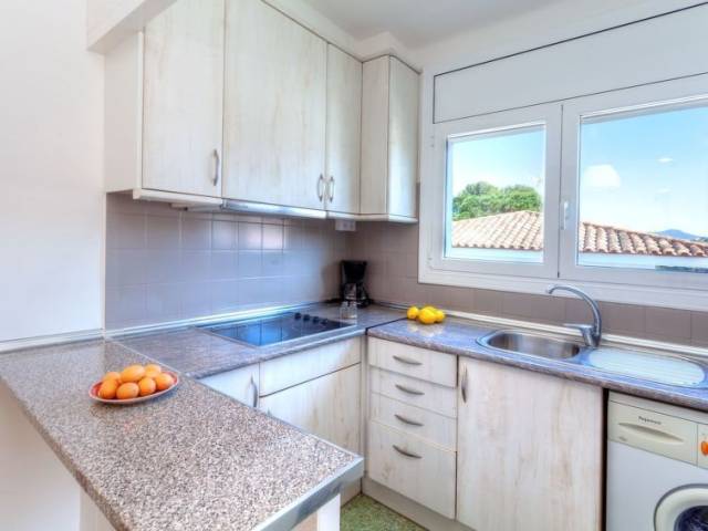 "Gran Sol", apartamento de 3 estancias 52 m2, en planta superior. Con mobiliario funcional y agradable: salón-comedor con TV satélite, TV digital, canales internacionales, aire acondicionado y bomba de calor, caliente. Salida a la terraza. 1 dorm. con 2 camas (90 cm), TV digital. 1 dorm., pequeño con 1 x 2 literas. Cocina abierta (horno, 4 placas de vitrocerámica, microondas, cafetera eléctrica). Ducha/WC. Terraza 10 m2. El alojamiento dispone de: lavadora. Garaje. Adecuado para familias. Aire acondicionado con bomba de calor únicamente en el comedor. HUTG046842