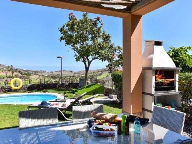 Entorno de la vivienda: jardín (privado), terreno con hierba (privado, 310 m2), piscina (privado, climatizada), ducha exterior (privado), barbacoa (privado).