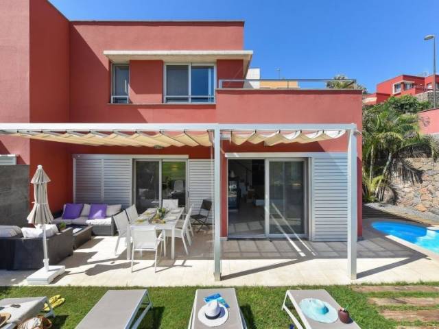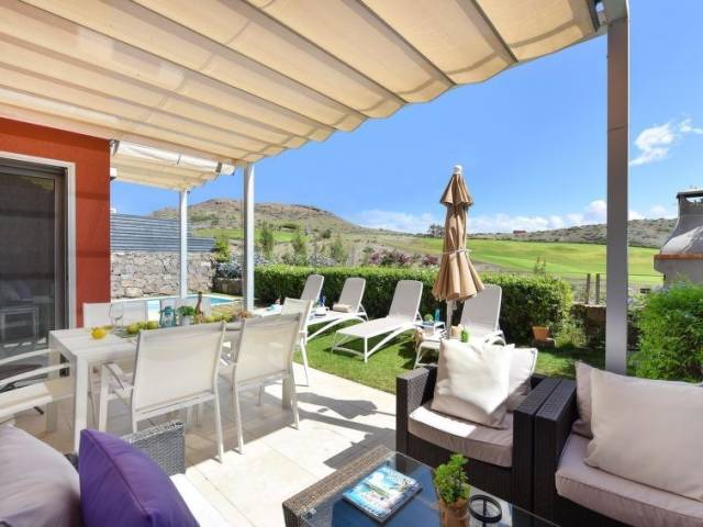 Situación: en el centro de Salobre Golf, en las afueras de Maspalomas, lugar aislado, tranquilo, soleado en una colina. Vista desde la vivienda a las montañas.