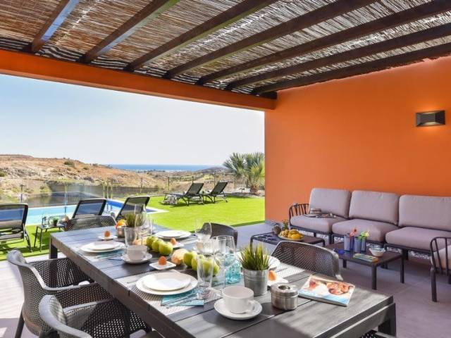 Situación: en el centro de Salobre Golf Resort, en la periferia de Maspalomas 5km, en las afueras de Meloneras 7km, lugar tranquilo, soleado. Vista desde la vivienda a las montañas y a la localidad.