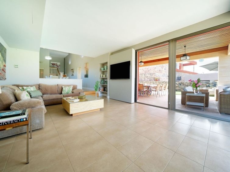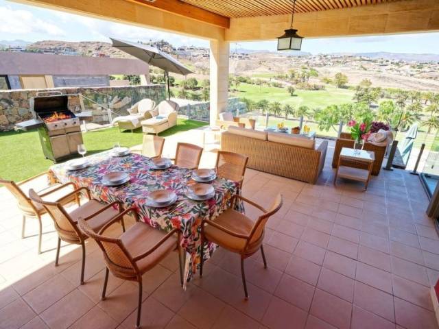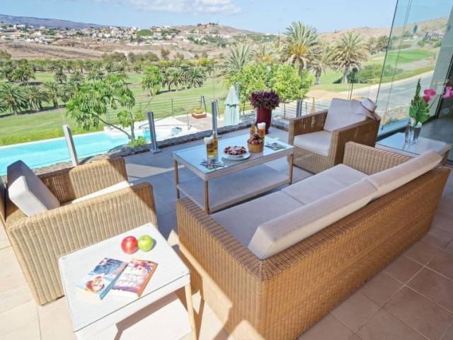 Situación: en el centro de Salobre, en la periferia de Maspalomas, lugar soleado. Vista desde la vivienda al mar, a las montañas, al jardín y a la localidad.