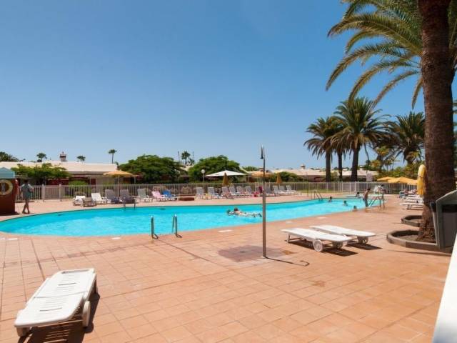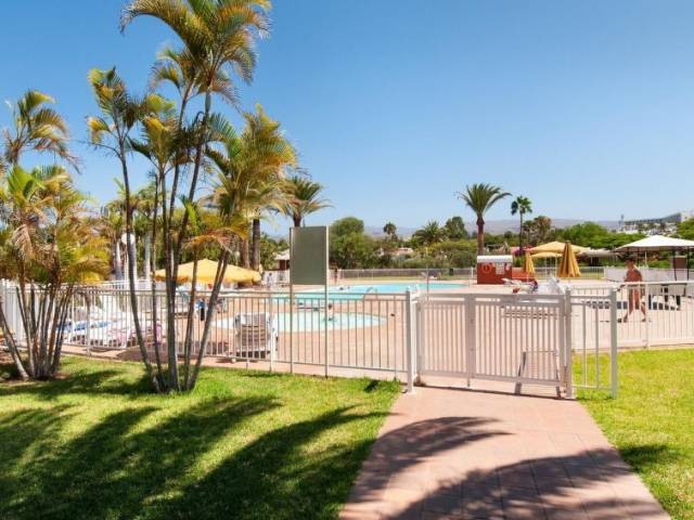 Situación: en el centro de Maspalomas, lugar céntrico, tranquilo, soleado. Vista desde la vivienda al jardín.