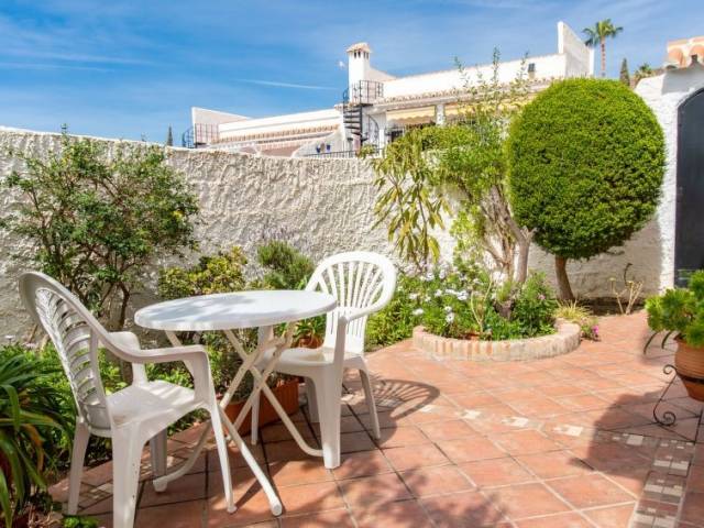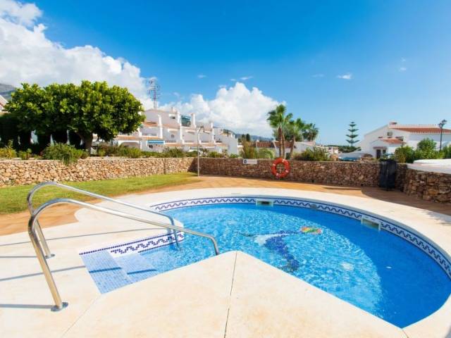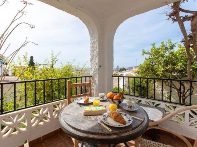 Capistrano: Casa de apartamentos "Naranjos", confortable. En el barrio de Capistrano, en la localidad, a 1.1 km del centro de Nerja, a 1.0 km del mar, a 1.0 km de la playa, en una zona peatonal. Comunitario: jardín natural, bonito jardín para relajarse, 2 piscinas (100 - 175 cm de profundidad, Disponible por temporada: 14.Mar. - 31.Dic.). Ducha/WC en zona de piscina, piscina para niños. Privado: jardín natural, terreno con árboles frutales. Terraza-jardín, barbacoa. Tienda 300 m, supermercado 425 m, playa de arena "Burriana" 1.0 km. Tenis 389 m. Atracciones en los alrededores: Cuevas de Nerja 1.1 km, Frigiliana 3.0 km, Almuñecar 1.5 km. A tener en cuenta: sin ascensor.
