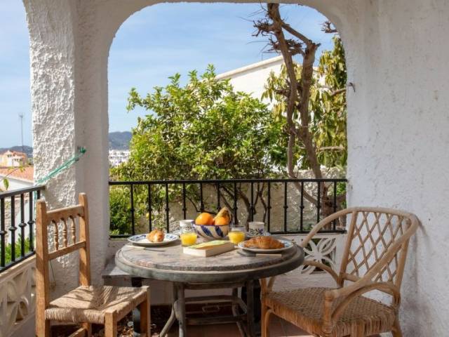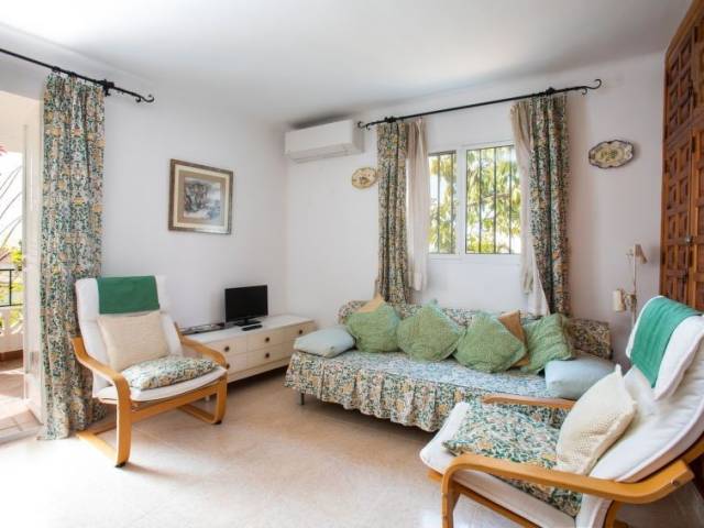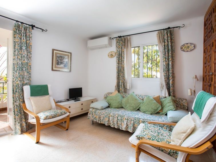 "Naranjos", apartamento de 2 estancias 60 m2, orientación norte. Espacioso, con mobiliario funcional: salón-comedor con mesa de comedor, TV digital, aire acondicionado y bomba de calor, caliente. Salida al jardín. 1 dorm. con 2 camas (90 cm, 190 cm de longitud), aire acondicionado y bomba de calor, caliente. Cocina (horno, 4 placas de vitrocerámica, tostadora, hervidor de agua eléctrico, microondas). Salida a la terraza-jardín. Ducha/WC. Terraza-jardín. Muebles de terraza, barbacoa (portátil). El alojamiento dispone de: lavadora, plancha, trona, cuna, secador de pelo. Internet (Wifi, gratis). VFT/MA/63658