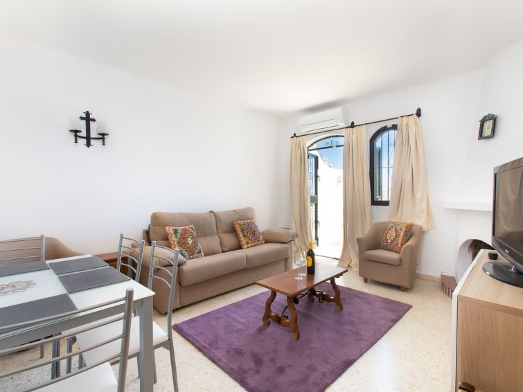 Capistrano Village a 1 km de Nerja Centro: Casa de apartamentos " Joel", sencillo, confortable. En el barrio de Capistrano Village, en la localidad, a 1 km del centro de Nerja, area residencial (villas), a 979 m del mar, a 979 m de la playa. Comunitario: jardín natural, piscina protegida (40 - 100 cm de profundidad, Disponible por temporada: 31.Mar. - 31.Dic.). WC en zona de piscina, ducha/WC en zona de piscina, piscina para niños. Privado: terraza. En el inmueble: con TV, lavadora. Supermercado 269 m, playa de arena "Burriana" 979 m. Atracciones en los alrededores: Cuevas de Nerja 1.1 km, Frigiliana 3.1 km, Almuñecar 15.0 km.