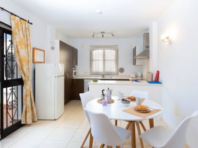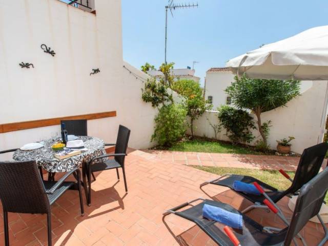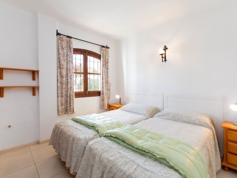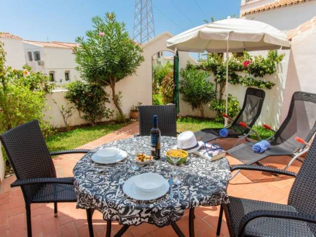 "Las Golondrinas", apartamento de 3 estancias 50 m2, orientación sur. Con mobiliario sencillo y funcional: salón-comedor con aire acondicionado y bomba de calor, caliente. Salida al jardín, a la terraza-jardín. 1 dorm. con 2 camas (90 cm, 190 cm de longitud), aire acondicionado y bomba de calor, caliente. 1 dorm. con 1 cama de matrimonio (135 cm, 190 cm de longitud), aire acondicionado y bomba de calor, caliente. (horno, 4 placas de vitrocerámica, hervidor de agua eléctrico, microondas, congelador, cafetera eléctrica). Ducha/WC. Terraza-jardín. Muebles de terraza. El alojamiento dispone de: lavadora, plancha, trona, cuna, secador de pelo. Internet (Wifi, gratis). A/MA/01239