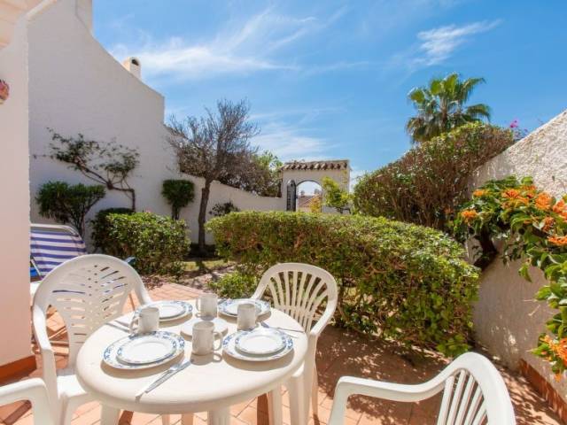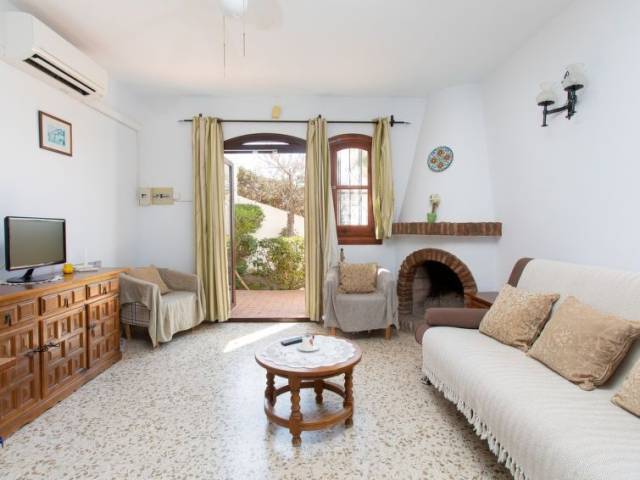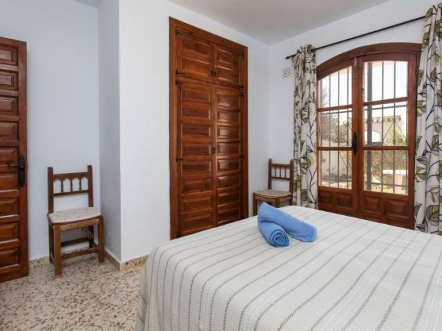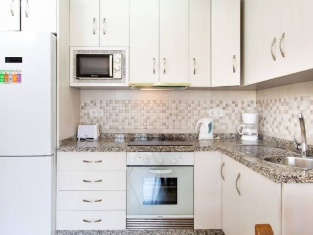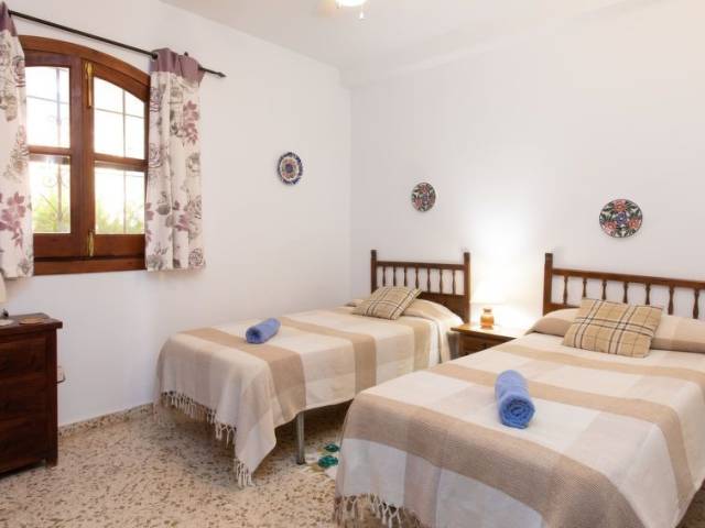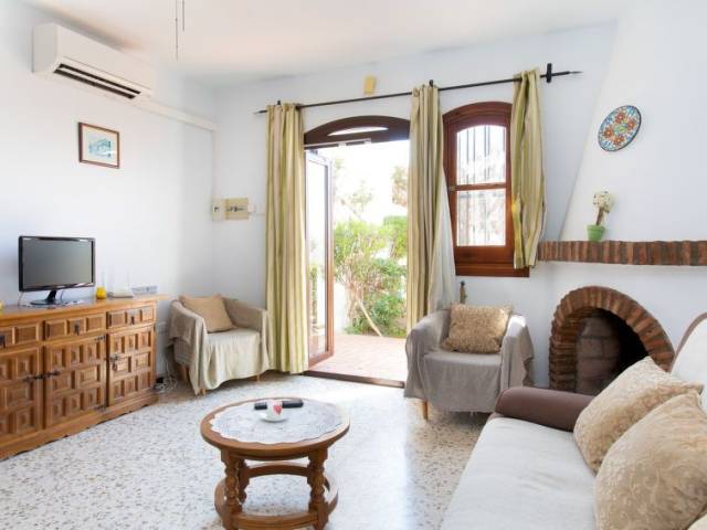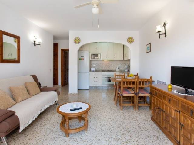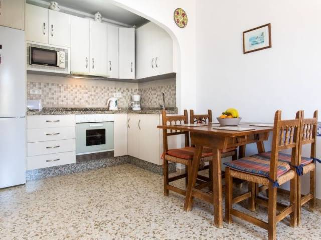 "Susana", apartamento de 2 estancias 60 m2, orientación sur. Con mobiliario sencillo y funcional: salón-comedor con chimenea, TV satélite, TV digital, aire acondicionado, ventilador y bomba de calor, caliente. Salida a la terraza-jardín. 1 dorm. con 2 camas (90 cm, 190 cm de longitud), calefacción eléctrica y ventilador. 1 dorm. con 1 cama de matrimonio (150 cm, 190 cm de longitud), calefacción eléctrica y ventilador. Salida a la terraza-jardín. Cocina abierta (horno, 4 placas de vitrocerámica, tostadora, hervidor de agua eléctrico, microondas, congelador, cafetera eléctrica). Ducha/WC. Terraza-jardín. Muebles de terraza. El alojamiento dispone de: plancha, trona, cuna, secador de pelo. Internet (Wifi, gratis). A/MA/01239