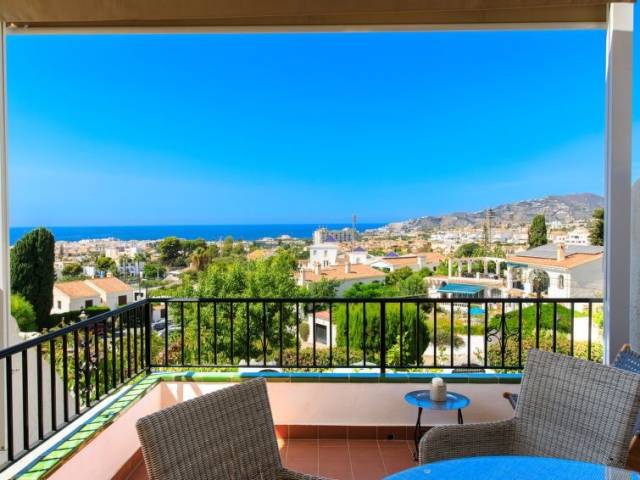 Capistrano Village a 2 km de Nerja: Casa de apartamentos "Limoneros", bonito, confortable de 2 plantas. Area residencial (villas), a 1.5 km del mar, a 1.5 km de la playa, orientación sur. Comunitario: terreno con árboles frutales, 2 piscinas (Disponible por temporada: 09.Mar. - 31.Dic.). Privado: bonito jardín para relajarse. Tienda, tienda de comestibles, supermercado 300 m, restaurante 100 m, panadería 300 m, café, parada de autobús 100 m. A tener en cuenta: sin ascensor. El propietario no acepta grupos de adolescentes/jóvenes.