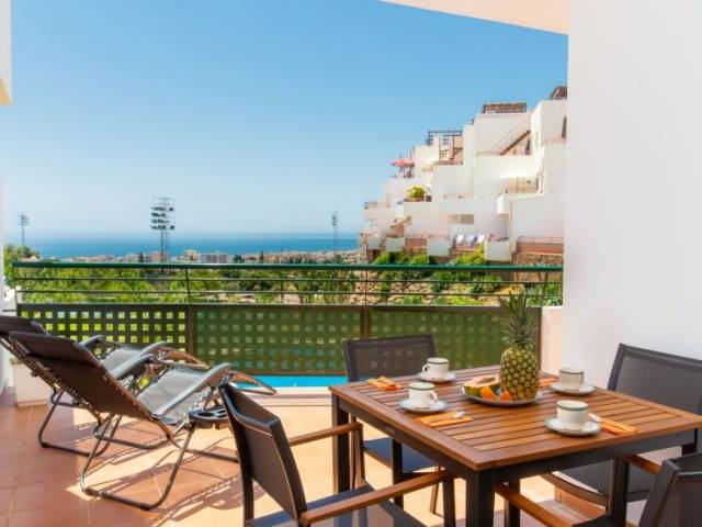 Nerja: Casa de apartamentos "Clavel", moderno, bonito. A 1.1 km del centro de Nerja, area residencial (villas), a 1.0 km del mar, a 1.0 km de la playa, orientación sur. Comunitario: piscina (Disponible por temporada: 24.Jun. - 31.Dic.). Ducha exterior, aparcamiento n. 10. Tienda, tienda de comestibles 200 m, supermercado 265 m, centro comercial 23 km, restaurante, panadería, café 200 m, zona peatonal 1 km, alquiler de bicicletas 500 m, parada de autobús 200 m, estación de tren "Málaga" 50 km, playa de arena "Burriana" 1.1 km, centro de buceo 1.1 km, piscina termal 150 m. Puerto deportivo 17 km, puerto para yates 17 km, campo de golf (18 hoyos) 23 km, escuela de surf 17 km, escuela de vela 17 km. Atracciones en los alrededores: Frigiliana 3.0 km, Cuevas de Nerja 2.0 km, Torrox Costa 8.1 km. Zonas de esquí populares fácilmente accesibles: Sierra Nevada. Zona de senderismo Sierra Almijara, Sirra tejeda. A tener en cuenta: equipamiento para bebés. El propietario no acepta grupos de adolescentes/jóvenes. Carga y descarga de equipaje posible en la casa de vacaciones.