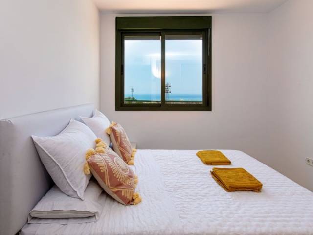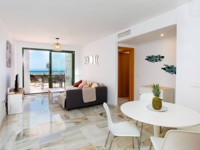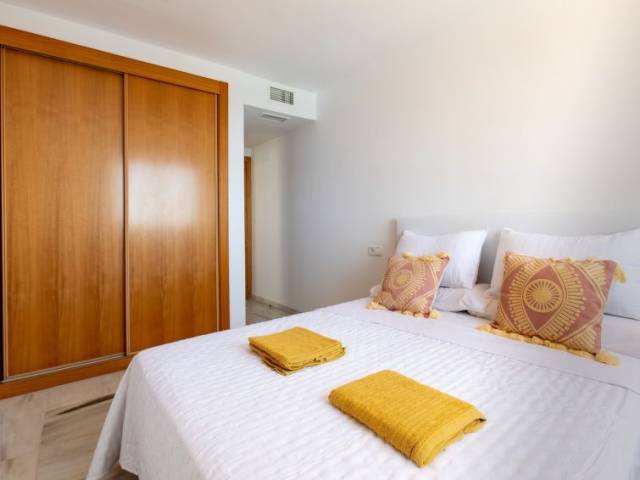 "Clavel", apartamento de 3 estancias 70 m2, orientación sur. Con mobiliario funcional y confortable: salón-comedor con 1 sofá-cama (150 cm, 190 cm de longitud), TV, TV satélite y aire acondicionado. Salida a la terraza. 1 dorm. con 1 cama de matrimonio (150 cm, 190 cm de longitud), baño/bidet/WC y aire acondicionado. 1 dorm. con 2 camas (90 cm, 190 cm de longitud), aire acondicionado. Cocina abierta (horno, 4 placas de vitrocerámica, tostadora, microondas, cafetera eléctrica) con mesa de comedor. Baño/WC. Terraza grande. Muebles de terraza. Vista espléndida al mar y a la localidad. El alojamiento dispone de: lavadora, plancha, secador de pelo. Internet (Wifi, gratis). Garaje. A/MA/01899