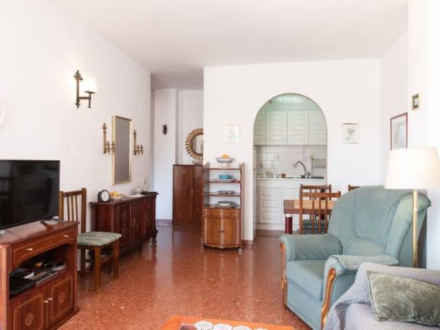 "Marja", apartamento de 2 estancias 75 m2, orientación sureste. Salón-comedor con 1 sofá-cama (90 cm, 190 cm de longitud), TV digital, aire acondicionado y bomba de calor, caliente. Salida a la terraza. 1 dorm. con 1 cama de matrimonio (150 cm, 190 cm de longitud), calefacción eléctrica y ventilador. Cocina abierta (horno, 4 placas de vitrocerámica, tostadora, hervidor de agua eléctrico, microondas, congelador, cafetera eléctrica). Ducha/WC. 2 terrazas grandes. Muebles de terraza, tumbonas. Vista muy bonita al mar y a la localidad. El alojamiento dispone de: lavadora, plancha, trona, cuna, secador de pelo. Internet (ADSL, gratis). VFT/MA/64128