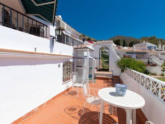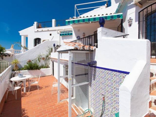 Nerja: Casa de apartamentos "Marja", de 2 plantas. En la periferia, a 2 km del centro de Nerja, a 2 km del mar, a 2 km de la playa. Comunitario: jardín natural, piscina (10 x 8 m, 100 - 175 cm de profundidad, Disponible por temporada: 01.Abr. - 01.Nov.). Ducha/WC en zona de piscina. Privado: patio. Tienda, tienda de comestibles 300 m, supermercado 500 m, centro comercial 23 km, restaurante 300 m, bar 500 m, panadería, café, parada de autobús 300 m, estación de tren "Malaga" 50 km, ferry "Malaga" 50 km, playa de arena "Burriana" 2 km, centro de buceo 2 km. Puerto deportivo 17 km, puerto para yates 17 km, campo de golf (18 hoyos) 20 km, escuela de surf 17 km, escuela de vela 17 km. Atracciones en los alrededores: Frigiliana, Maro, Malaga, Granada, La Herradura, Cómpeta. Zonas de esquí populares fácilmente accesibles: Sierra Nevada. Zona de senderismo Sierra Almijara, Sierra Tejeda, Alpujarras. A tener en cuenta: sin ascensor. El propietario no acepta grupos de adolescentes/jóvenes.