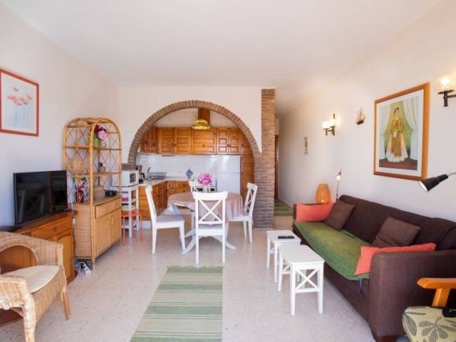 "Canaria", apartamento de 2 estancias 50 m2, orientación sureste. Con mobiliario sencillo: salón-comedor con aire acondicionado y bomba de calor, caliente. Salida a la terraza. 1 dorm. con 1 cama de matrimonio (150 cm, 190 cm de longitud). Cocina abierta (horno, 3 placas de vitrocerámica, tostadora, hervidor de agua eléctrico, microondas, congelador). Baño/WC. Muebles de terraza, barbacoa. Vista muy bonita al mar. El alojamiento dispone de: lavadora, plancha, trona, cuna, secador de pelo. Internet (Wifi, gratis). A/MA/01239