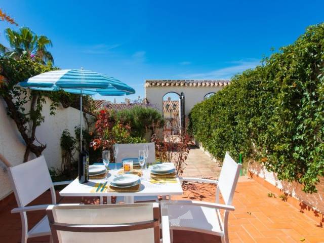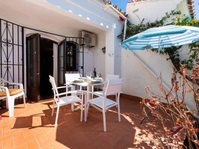 Nerja: Casa de apartamentos "Mañana", bonito, agradable. En el barrio de San Juan Capistrano, en la localidad, a 2.0 km del centro de Nerja, area residencial (villas), a 1.1 km del mar, a 1.1 km de la playa. Comunitario: piscina (15 x 8 m, 100 - 175 cm de profundidad, Disponible por temporada: 01.Jun. - 01.Nov.). Ducha exterior. Privado: bonito jardín para relajarse. El propietario no acepta grupos de adolescentes/jóvenes.