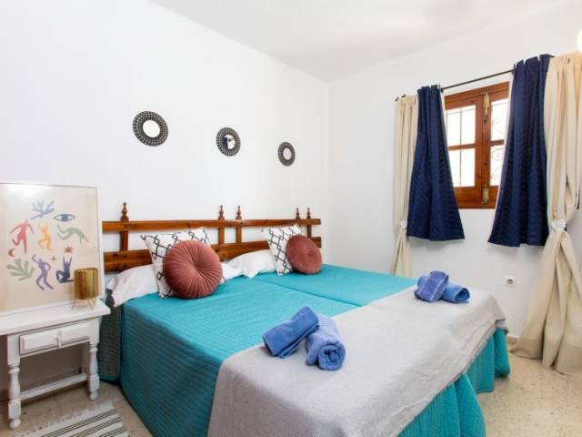 Nerja: Casa de apartamentos "Pueblo". En la localidad, a 1.9 km del centro de Nerja, area residencial (villas), zona con poco tráfico, a 1 km del mar, a 1 km de la playa, en una calle. Comunitario: jardín natural, terreno con hierba, 2 piscinas (100 - 175 cm de profundidad, Disponible por temporada: 01.Ene. - 31.Dic.). Piscina con forma irregular. Ducha/WC en zona de piscina, piscina para niños, terraza-jardín, mantenimiento de la piscina a través del propietario/jardinero. Privado: jardín natural, bonito jardín para relajarse. En el inmueble: Wifi, aire acondicionado, lavadora. Supermercado 700 m, a 20 minutos del centro andando, playa de arena "Burriana". Tenis 600 m. Atracciones en los alrededores: Cuevas de Nerja 3.2 km, Frigiliana 8.1 km, Playa Burriana 1 km, Almuñecar 22 m. Zona de senderismo Pinarillos 6.2 km. A tener en cuenta: sin ascensor. Aeropuerto 50 km de la casa.