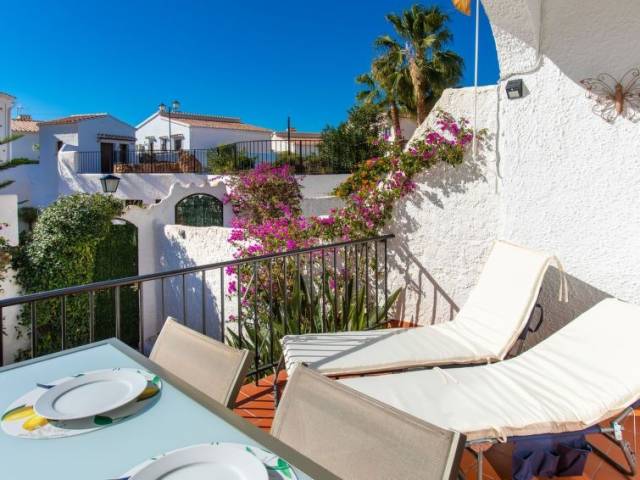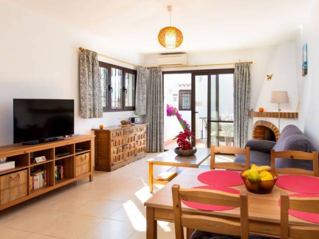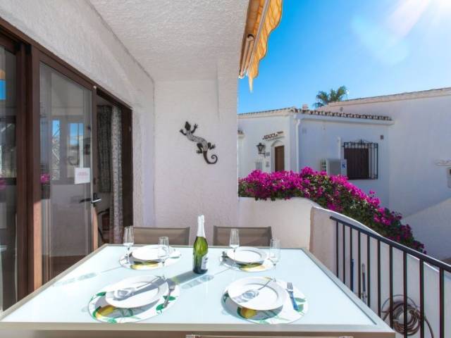 Nerja: Casa de apartamentos "Dali", bonito, confortable. Lugar tranquilo, soleado en un barrio residencial, a 1.5 km del mar, a 1.5 km de la playa, orientación sur. Comunitario: terreno con hierba, piscina (100 - 175 cm de profundidad, Disponible por temporada: 01.Abr. - 31.Oct.). Ducha/WC en zona de piscina, piscina para niños, ducha exterior, muebles de jardín. Privado: césped, bonito jardín para relajarse. Tienda, tienda de comestibles, supermercado 500 m, centro comercial 23 km, restaurante, bar 500 m, panadería 200 m, café 500 m, zona peatonal 2 km, alquiler de bicicletas 1.5 km, bar al aire libre 500 m, parada de autobús "Capistrano Village" 500 m, estación de tren "Malaga" 50 km, playa de arena "Burriana" 2 km, centro de buceo 2 km. Puerto deportivo 17 km, puerto para yates 17 km, campo de golf (18 hoyos) 23 km, escuela de surf 17 km, escuela de vela 17 km, tenis 500 m, polideportivo 1 km. Atracciones en los alrededores: Frigiliana, Maro, Cómpeta, Granada, La Herradura, Málaga. Zonas de esquí populares fácilmente accesibles: Sierra Nevada. Zona de senderismo Sierra Tejeda, Sierra Almijara, Sierra Nevada. A tener en cuenta: sin ascensor. Los taxis no pueden llegar hasta delante de la casa. El propietario no acepta grupos de adolescentes/jóvenes. La propiedad con ref: ES5405.728.1 está situada en la misma parcela.