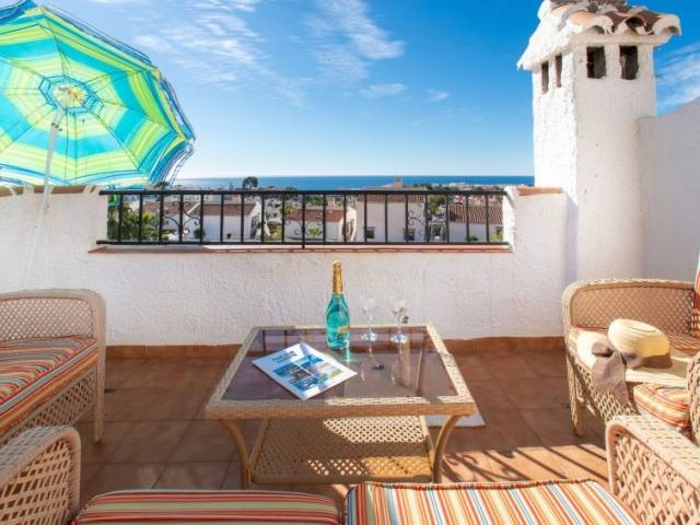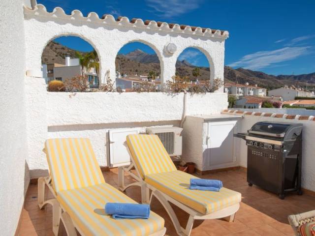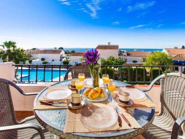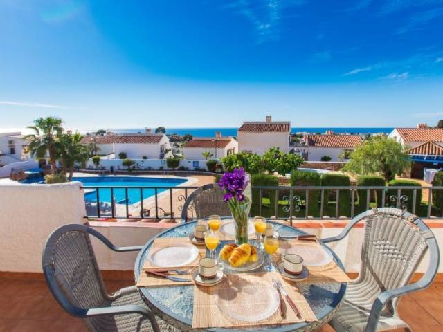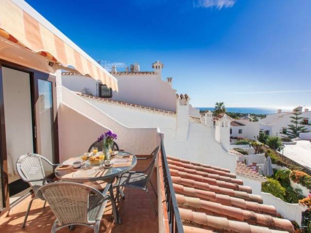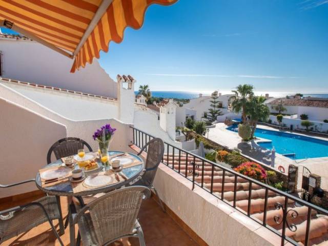 Nerja: Casa de apartamentos "Angela", bonito, confortable, rodeado de árboles. En la localidad, a 1.5 km del centro de Nerja, lugar tranquilo, soleado en un barrio residencial, a 1.5 km del mar, a 1.5 km de la playa, orientación sur. Comunitario: jardín en diferentes niveles, 2 piscinas (Disponible por temporada: 01.Jun. - 31.Sep.). Ducha/WC en zona de piscina. Privado: terraza, muebles de jardín, barbacoa. En el inmueble: solarium. Tienda, tienda de comestibles, supermercado 500 m, centro comercial 23 km, restaurante, bar 200 m, panadería 500 m, café, bar al aire libre 200 m, parada de autobús "Capistrano Village" 300 m, estación de tren "Malaga" 50 km, ferry "Malaga" 50 km, playa de arena "Burriana" 1.5 km, centro de buceo 1.5 km. Puerto deportivo 17 km, puerto para yates 17 km, campo de golf (18 hoyos) 23 km, escuela de surf 17 km, escuela de vela 17 km, tenis, polideportivo 500 m. Atracciones en los alrededores: Frigiliana, Malaga, Granada, Maro, La Herradura, Competa. Zonas de esquí populares fácilmente accesibles: Sierra Nevada. Zona de senderismo Sierra Almijara, Sierra Tejeda. A tener en cuenta: sin ascensor. El propietario no acepta grupos de adolescentes/jóvenes. Carga y descarga de equipaje posible en la casa de vacaciones.