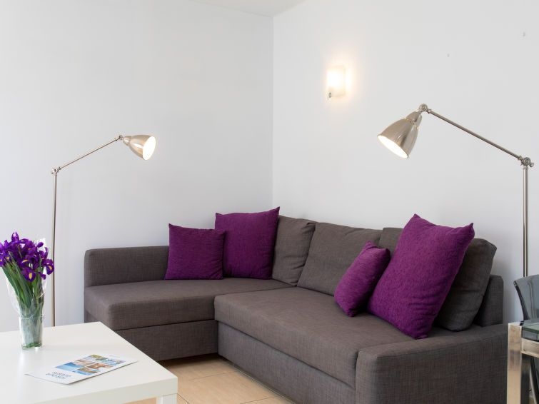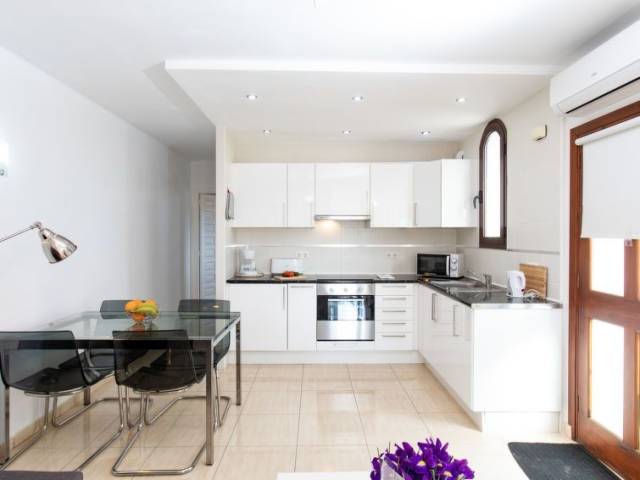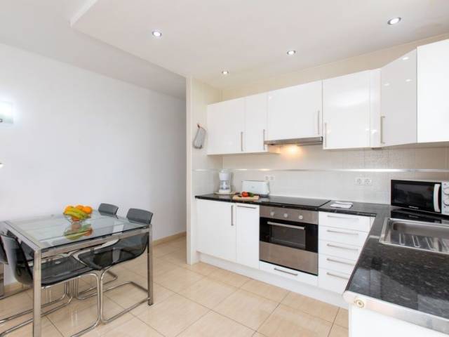 "Angela", apartamento de 2 estancias 50 m2. Espacioso y luminoso, con mobiliario funcional: salón-comedor con 1 sofá-cama doble, TV digital, canales internacionales, aire acondicionado y bomba de calor, caliente. Salida a la terraza, orientación sur con 1 cama de matrimonio (160 cm, 200 cm de longitud), aire acondicionado y bomba de calor, caliente. Cocina abierta (horno, 4 placas de vitrocerámica, tostadora, hervidor de agua eléctrico, microondas, congelador, cafetera eléctrica). Ducha/WC. 2 terrazas grandes. Muebles de terraza, barbacoa, tumbonas (2). Vista panorámica al mar y a la localidad. El alojamiento dispone de: lavadora, plancha, trona, cuna, secador de pelo. Internet (Wifi, gratis). 1 mascota / perro. VFT/MA/60456