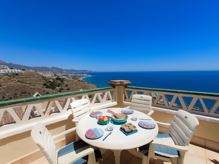 Casa de apartamentos "Alcazaba", bonito, confortable. En las afueras de la localidad, a 2 km del centro de Nerja, a 1 km del mar, a 1 km de la playa. Comunitario: piscina en forma de riñon (15 x 5 m, 110 - 180 cm de profundidad, Disponible por temporada: 01.Abr. - 31.Oct.). WC en zona de piscina. En el inmueble: lavadora. Posibilidad de aparcamiento en la calle. Tienda 1 km, tienda de comestibles 1 km, supermercado 2.2 km, centro comercial 25 km, restaurante 1 km, bar 1 km, panadería 1 km, café 1 km, zona peatonal 1 km, alquiler de bicicletas 2.5 km, bar al aire libre 1 km, parada de autobús "Nerja" 2.5 km, estación de tren "Malaga" 50 km, ferry "Malaga" 50 km, playa de arena 1 km, centro de buceo 3 km. Puerto deportivo 19 km, puerto para yates 19 km, campo de golf (18 hoyos) 23 km, escuela de surf 19 km, escuela de vela 19 km, tenis 3 km, rutas de senderismo desde la casa 10 km, caminos para bicicletas 2 km. Atracciones en los alrededores: Frigiliana, Maro, La Herradura, Almuñecar, Torre del Mar, Malaga. Zonas de esquí populares fácilmente accesibles: Sierra Nevada. Zona de senderismo Sierra Tejeda, Sierra Almijara. A tener en cuenta: coche recomendable, sin ascensor. El propietario no acepta grupos de adolescentes/jóvenes.