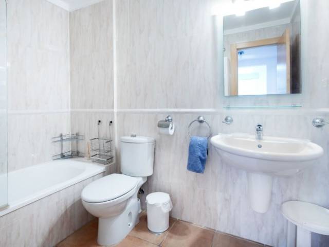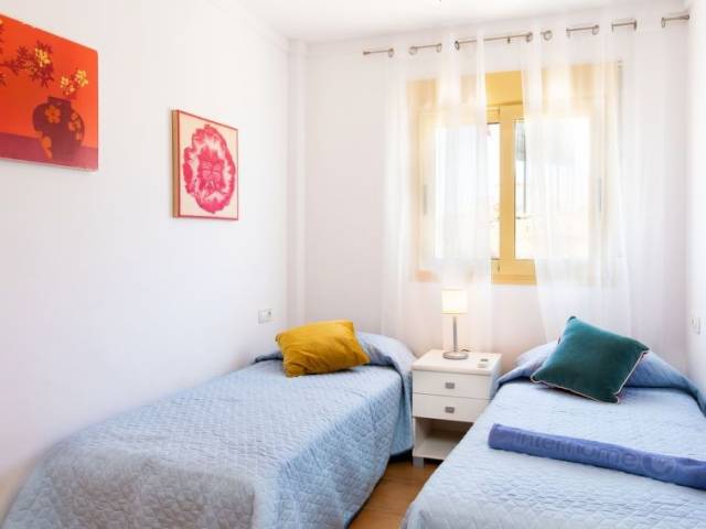"Alcazaba", apartamento de 4 estancias 93 m2. Espacioso, con mobiliario funcional y confortable: salón-comedor con TV digital, aire acondicionado y ventilador. Salida a la terraza. 1 dorm. con 2 camas (90 cm, 190 cm de longitud), aire acondicionado. 1 dorm. con 1 cama de matrimonio (150 cm, 190 cm de longitud), aire acondicionado. 1 dorm. con 2 camas (90 cm, 190 cm de longitud), aire acondicionado. Cocina abierta (horno, lavavajillas, 4 placas de vitrocerámica, tostadora, hervidor de agua eléctrico, microondas, congelador, cafetera eléctrica). 2 ducha/WC. Ningún tipo de calefacción. Muebles de terraza. Vista panorámica al mar. El alojamiento dispone de: plancha, trona, cuna, secador de pelo. Internet (Wifi, gratis). 1 mascota pequeña / perro. VFT/MA/54953
