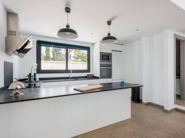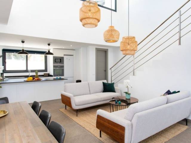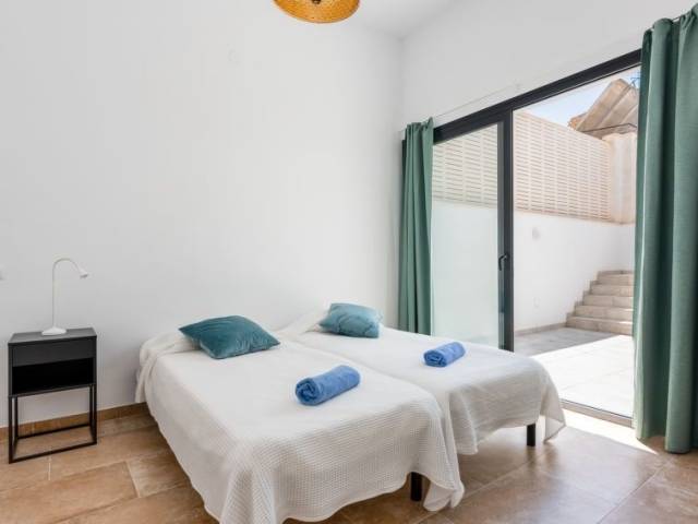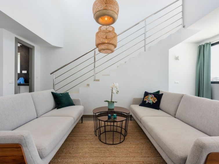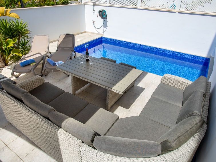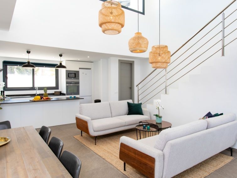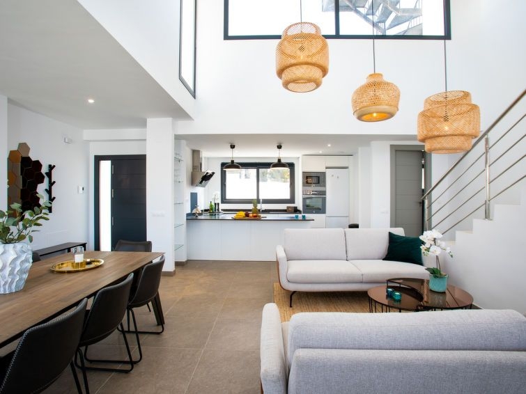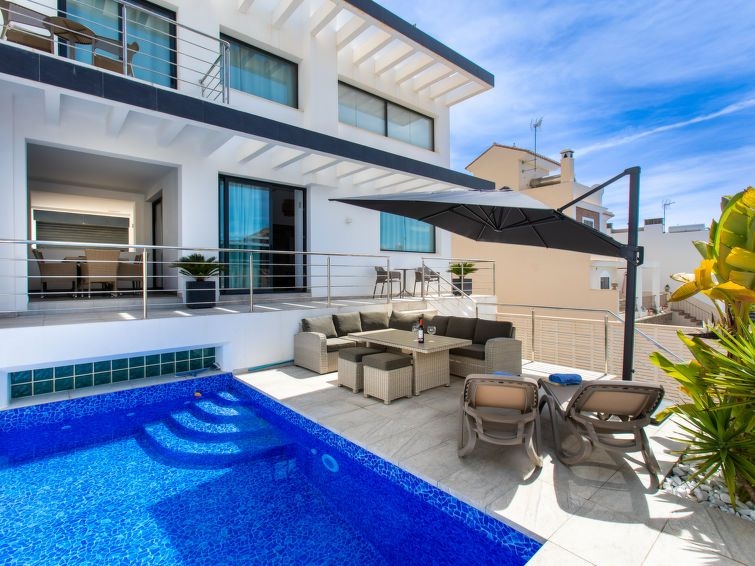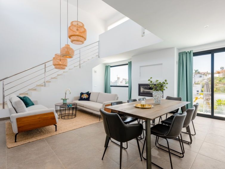 Nerja: Casa "Aldea", moderna, bonita, confortable de 3 plantas. En la localidad, a 2 km del centro de Nerja, lugar tranquilo en un barrio residencial, area residencial (villas), a 2 km del mar, a 2 km de la playa. Privado: patio, piscina rectangular (5 x 2 m, 100 - 150 cm de profundidad, Disponible por temporada: 01.Ene. - 31.Dic.). Terraza, muebles de jardín, barbacoa. En el inmueble: solarium, lavadora. Aparcamiento. Tienda 1 km, tienda de comestibles 1 km, supermercado 1 km, centro comercial 23 km, restaurante 1.5 km, bar 1.5 km, panadería 1 km, café 1.5 km, zona peatonal 2 km, alquiler de bicicletas 2 km, bar al aire libre 1.5 km, parada de autobús 500 m, estación de tren "Málaga", playa de arena "Burriana" 2 km, centro de buceo 2 km. Puerto deportivo 20 km, puerto para yates 20 km, campo de golf (18 hoyos) 22 km, escuela de surf 20 km, escuela de vela 20 km, tenis 2 km. Atracciones en los alrededores: Nerja, Frigiliana, Cuevas de Nerja, Malaga, Granada, Almuñecar. Zonas de esquí populares fácilmente accesibles: Sierra Nevada. Zona de senderismo Sierra Tejeda, Sierra Almijara. A tener en cuenta: coche recomendable. Equipamiento para bebés (incluido). El propietario no acepta grupos de adolescentes/jóvenes. Carga y descarga de equipaje posible en la casa de vacaciones. "Aldea", villa 5 estancias 120 m2. Espacioso y luminoso, con mobiliario confortable: salón-comedor con TV digital, aire acondicionado y bomba de calor, caliente. Cocina abierta (horno, lavavajillas, 4 placas de vitrocerámica, tostadora, hervidor de agua eléctrico, microondas, congelador, cafetera eléctrica). WC separado. Ningún tipo de calefacción. En planta inferior: 1 dorm. con 2 camas (90 cm, 200 cm de longitud). 1 dorm. con 1 cama de matrimonio (180 cm, 200 cm de longitud), ducha/WC. Sala de estar. Salida a la terraza, a la piscina. 1 dorm. con 1 cama de matrimonio (180 cm, 200 cm de longitud). Planta superior: 1 dorm. con 1 cama de matrimonio (180 cm, 200 cm de longitud), ducha/WC. Salida a la terraza. 2 terrazas grandes. Muebles de terraza, barbacoa, tumbonas. Vista lateral al mar y a la localidad. El alojamiento dispone de: lavadora, plancha, trona, cuna, secador de pelo. Internet (Wifi, gratis). VFT/MA50852