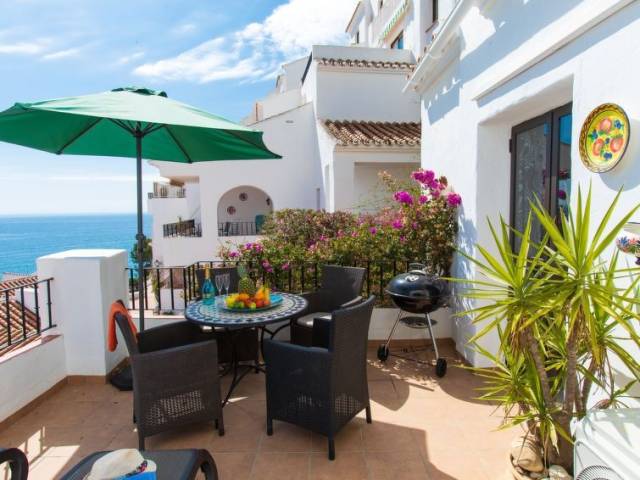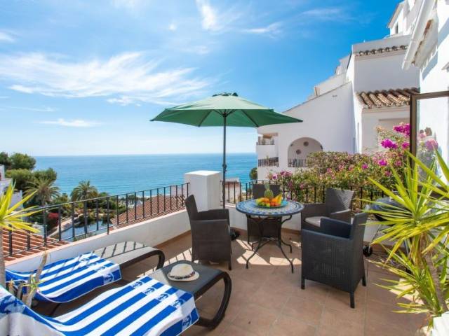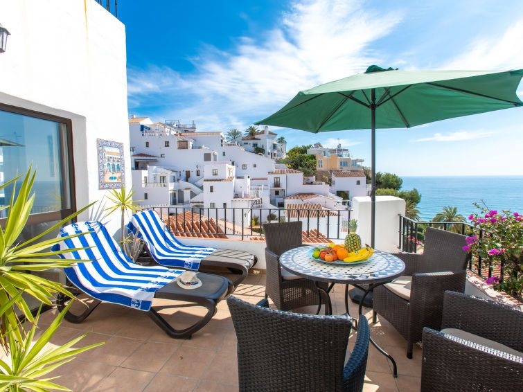 Nerja: Casa de apartamentos "Vista del Mar". A 200 m del mar, a 200 m de la playa, orientación sur. Comunitario: jardín en diferentes niveles grande, piscina en forma de riñon (8 x 5 m, 100 - 175 cm de profundidad, Disponible por temporada: 01.Mar. - 01.Nov. horario piscina: 10:00-20:00). Ducha/WC en zona de piscina, piscina para niños. Puerto deportivo 17 km, puerto para yates 17 km, campo de golf (18 hoyos) 25 km, escuela de surf 17 km, escuela de vela 17 km, tenis 1.5 km. Atracciones en los alrededores: Maro, Frigiliana, La Herradura, Almuñecar, Malaga, Granada. Zonas de esquí populares fácilmente accesibles: Sierra Nevada. Zona de senderismo Sierra Tejeda, Sierra Almijara, Alpujarras. El propietario no acepta grupos de adolescentes/jóvenes.