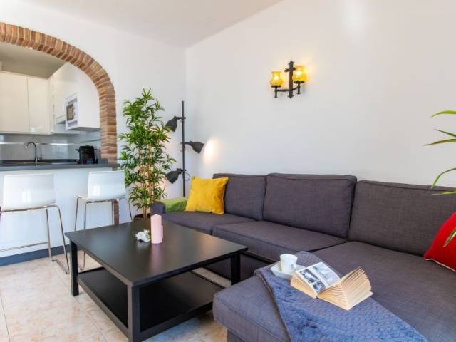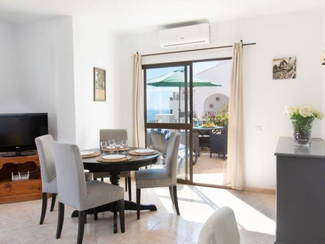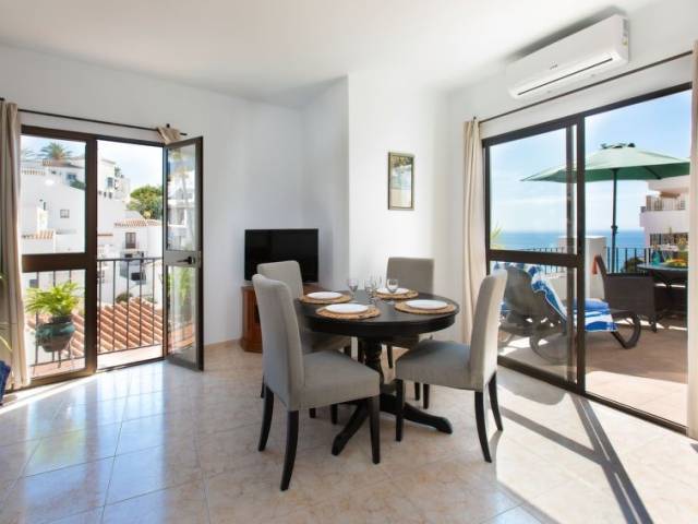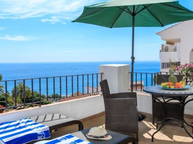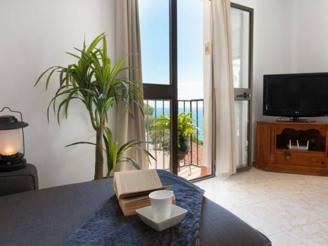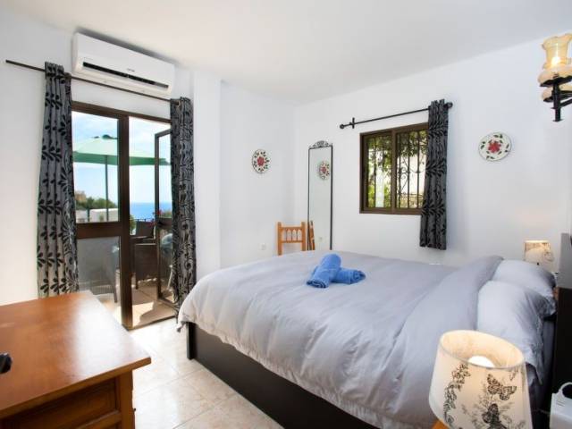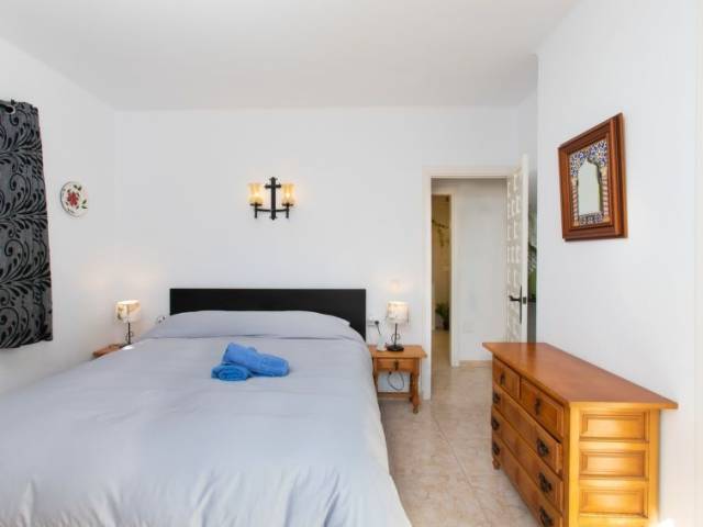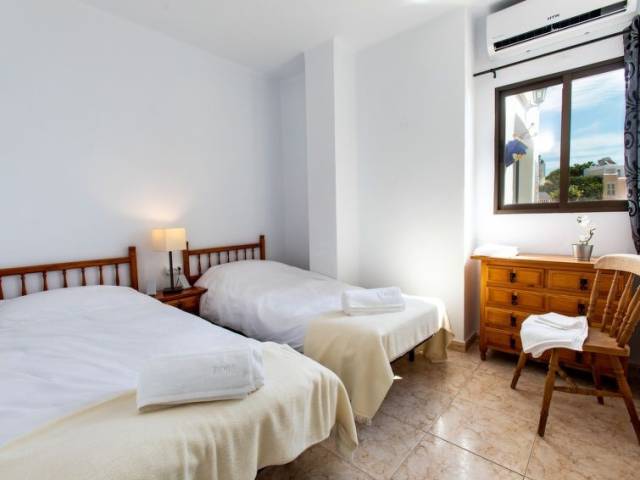 "Vista del Mar", apartamento de 3 estancias 75 m2. Baño/WC, ducha/WC. El alojamiento dispone de: lavadora, trona, cuna. Internet (Wifi, gratis). Vistas panorámicas al mar. Amueblado con gusto. Amplio salón/comedor con TV digital, aire acondicionado, puertas correderas a la terraza. Puerta adicional al balcón, cocina americana de esquina con barra americana y fregadero. 3 placas vitrocerámicas, frigorífico, microondas, hervidor de agua, cafetera Nespresso y de filtro, tostadora. Lavadero: fregadero, congelador, lavadora, tendedero, plancha. Dormitorio 1: cama doble grande (160x190), aire acondicionado, puertas francesas a la terraza. Dormitorio 2: dos camas individuales (90x190), aire acondicionado. Cuarto de baño 1: con ducha, WC, tocador, secador de pelo. Cuarto de baño 2: bañera con ducha, WC, tocador. Muebles de terraza y tumbonas. Barbacoa de carbón Weber. Hay ascensor en la propiedad. VFT/MA49819