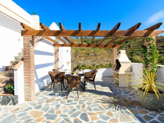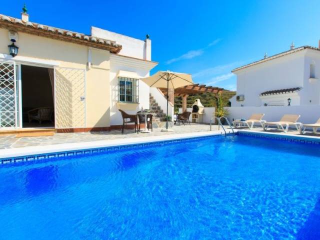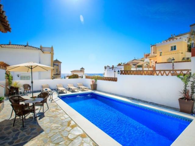 Tamango Hill a 2 km de Nerja: Casa "Villa Tamango Hill", amplia, bonita, confortable. En la periferia, a 2 km del centro de Nerja, lugar tranquilo en un barrio residencial, area residencial (villas), a 350 m del mar, a 350 m de la playa, cruzando la calle. Privado: piscina rectangular (4 x 8 m, Disponible por temporada: 31.Dic. - 01.Ene.). Ducha exterior, muebles de jardín, barbacoa. En el inmueble: acceso a internet, solarium, lavadora. Tienda 2 km, centro comercial 20 km, panadería 2 km, playa de arena 350 m, centro de buceo 2 km. Puerto deportivo 20 km, puerto para yates 20 km, campo de golf (18 hoyos) 20 km, escuela de vela 20 km, tenis 2 km, polideportivo 2 km, pistas de esquí 80 km. Atracciones en los alrededores: Frigiliana, Maro. Zonas de esquí populares fácilmente accesibles: Sierra Nevada. Lagos conocidos fácilmente accesibles: La Viñuela. Zona de senderismo Montañas Almijara. A tener en cuenta: coche recomendable. Equipamiento para bebés (incluido). El propietario no acepta grupos de adolescentes/jóvenes. Carga y descarga de equipaje posible en la casa de vacaciones. Vecindario muy sensible a ruidos. Se ruega respetar la tranquilidad y normas de buen comportamiento. "Villa Tamango Hill", villa 6 estancias 180 m2 en 2 plantas. Espacioso y luminoso, con mobiliario funcional y confortable: salón-comedor con TV, TV digital, canales internacionales y aire acondicionado. Salida a la terraza, a la piscina. 1 dorm. con 2 camas (90 cm, 190 cm de longitud), aire acondicionado. 1 dorm. con 2 camas (90 cm, 190 cm de longitud), aire acondicionado. 1 dorm. con 1 cama de matrimonio (150 cm, 190 cm de longitud), aire acondicionado. Cocina abierta (horno, lavavajillas, 4 placas de vitrocerámica, microondas, cafetera eléctrica). Baño/WC, ducha/WC. Ningún tipo de calefacción. En planta inferior: salón con aire acondicionado. 1 dorm. con 2 camas (90 cm, 190 cm de longitud), aire acondicionado. 1 dorm. con 1 cama de matrimonio (150 cm, 190 cm de longitud), aire acondicionado. Cocina). Ducha/WC. Muebles de terraza. Vista muy bonita al mar. El alojamiento dispone de: lavadora, trona, cuna hasta 3 años. Internet (Wifi, gratis). Adecuado para familias. La casa está situada a tan solo 350 m de la playa. Vistas al mar y la montaña. Con dos pisos independientes, uno con salón, cocina, baño, hab doble y otra con dos camas sencillas. Segundo piso con cocina, salón, 1 hab doble con baño ensuite,dos hab cada una con dos camas sencillas y baño. En la espaciosa terraza hay barbacoa, pérgola y tumbonas. El piso de abajo tiene su propio aceso. No está comunicado por dentro con el piso de arriba. Fianza de 950 euros para grupos de menores de 25 años, esta se tendrá que abonar en efectivo en el momento de la entrega de llaves y se devuelve el día de. VFT/MA/22358