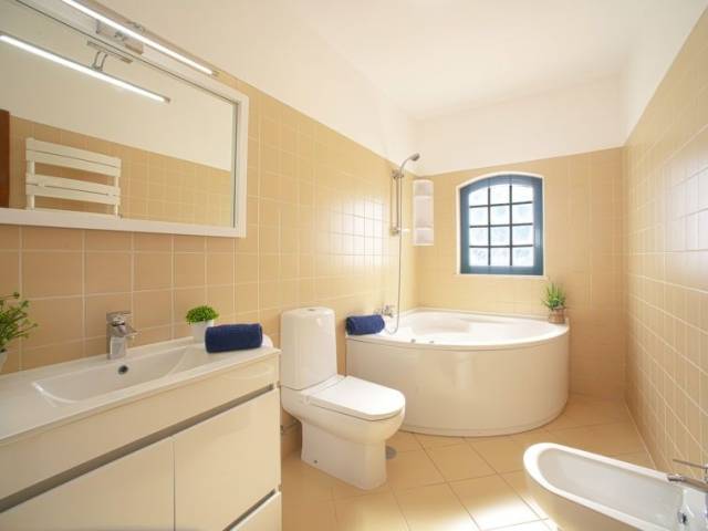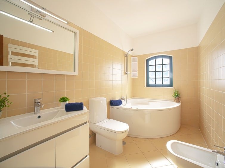"Casa de Verão", casa adosada 4 estancias 147 m2. Con mobiliario muy confortable y agradable: salón-comedor con TV, canales internacionales, pantalla plana, aire acondicionado y bomba de calor, caliente. Salida a la terraza. Cocina (horno, lavavajillas, 4 placas de vitrocerámica, tostadora, hervidor de agua eléctrico, microondas, congelador, cafetera eléctrica, Cápsulas de café (Dolce Gusto Not Incl)). Ducha/WC. Planta superior: 2 dorm., cada habitación con 2 camas (90 cm, 200 cm de longitud), aire acondicionado y bomba de calor, caliente. Salida a la terraza. 1 dorm. con 1 cama de matrimonio (160 cm, 200 cm de longitud), baño/WC, bañera de hidromasaje, aire acondicionado y bomba de calor, caliente. Salida a la terraza. Baño/WC. Muebles de terraza, barbacoa, tumbonas (2). Vista bonita a la piscina y al jardín. El alojamiento dispone de: lavadora, plancha, trona, cuna hasta 2 años, secador de pelo. Internet (Wifi). Plaza de aparcamiento n. S1B (2 Coches) junto a la casa. A tener en cuenta: adecuado para familias. Casa para no fumadores. 1 mascota pequeña / perro. Detector de humo, extintores. 112863/AL