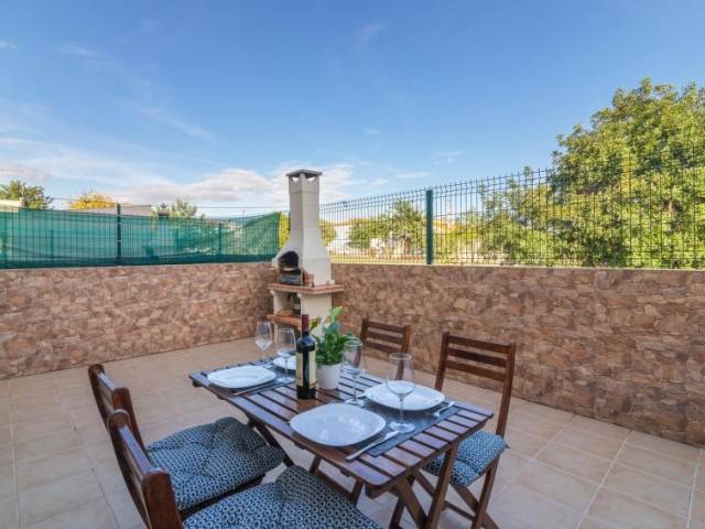 "Bela Vitta", casa adosada 3 estancias en 2 plantas. Con mobiliario funcional y confortable: salón-comedor con TV, canales internacionales y pantalla plana. Cocina (4 fogones, horno, lavavajillas, microondas, cafetera eléctrica) con mesa de comedor. Salida a la terraza. Baño, WC separado. Planta superior: 1 dorm. con 1 cama de matrimonio (160 cm, 200 cm de longitud), aire acondicionado y bomba de calor, caliente. 1 dorm. con 1 cama de matrimonio (160 cm, 200 cm de longitud), aire acondicionado y bomba de calor, caliente. Media bañera/WC, doble lavabo. Muebles de terraza, barbacoa. El alojamiento dispone de: Internet (Wifi). Plaza de aparcamiento n. R. A tener en cuenta: adecuado para familias. Casa para no fumadores. Extintores. 112895/AL